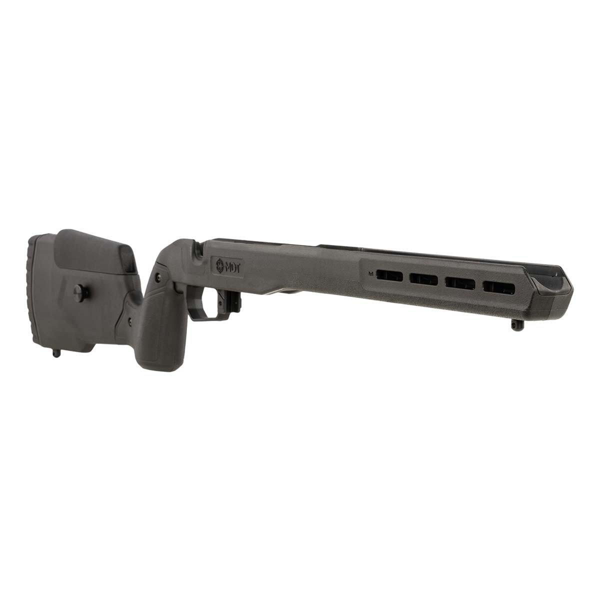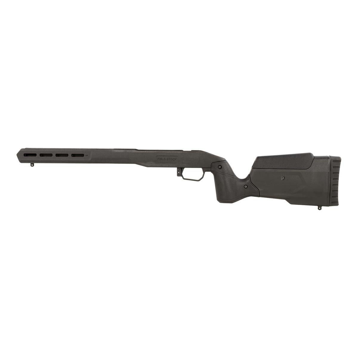 The traditionally shaped polymer stock provides comfort and warmth in cold weather. Improve accuracy with the aluminum v-block bedding and a free-floating barrel. The adjustable buttstock allows more comfort for long-range shots. The Field Stock is configurable for any shooting discipline. In addition to the included sling swivel studs, the M-LOK forend enables customizable accessories for hunting, competition, or casual long-range shooting.