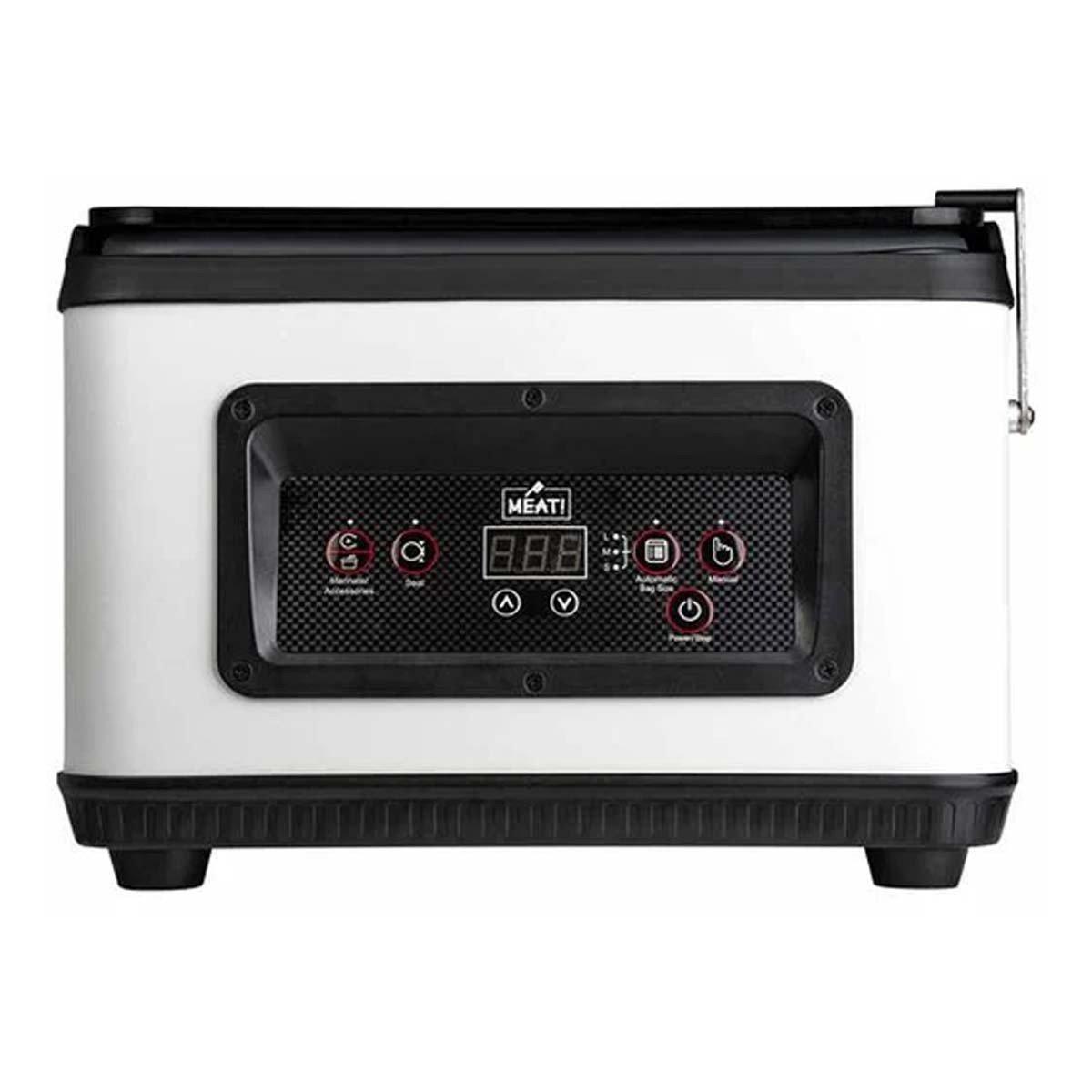 The MEAT! Chamber Sealer with Oil-less Pump is built to extract air with exacting control, seal after perfect seal. Its deep chamber handles meat, fish, and food of all sizes with an air-tight vacuum that even seals-in liquids. Thanks to its easy-to-read LCD screen and vacuum countdown indicator, you always know when the deal is sealed. Its oil-less pump significantly minimizes maintenance.