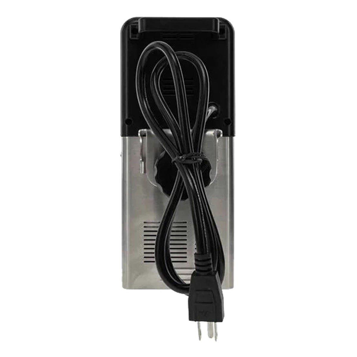 Step up your wild sous-vide game with the MEAT! commercial-grade Sous Vide Cooker. It heats up to 10 gallons of water from 41-203 degrees Fahrenheit. Its built-in, easy-to-set timer tells you when it's ready for the next cooking step while the LCD display gives you clear temperature readouts. The unit quickly attaches and detaches from any container.