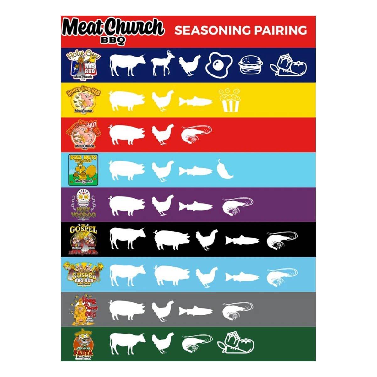 The Dia de la fajita! (Day of the Fajita!) Meat Church has lived in Texas, so they know a thing or two about the creation of the best Fajitas. Working with respected chefs and pitmasters until they reached the absolute perfect formula for Fajitas. This a southwestern fajita seasoning with a hint of citrus. Comes in a 14oz Shaker.
