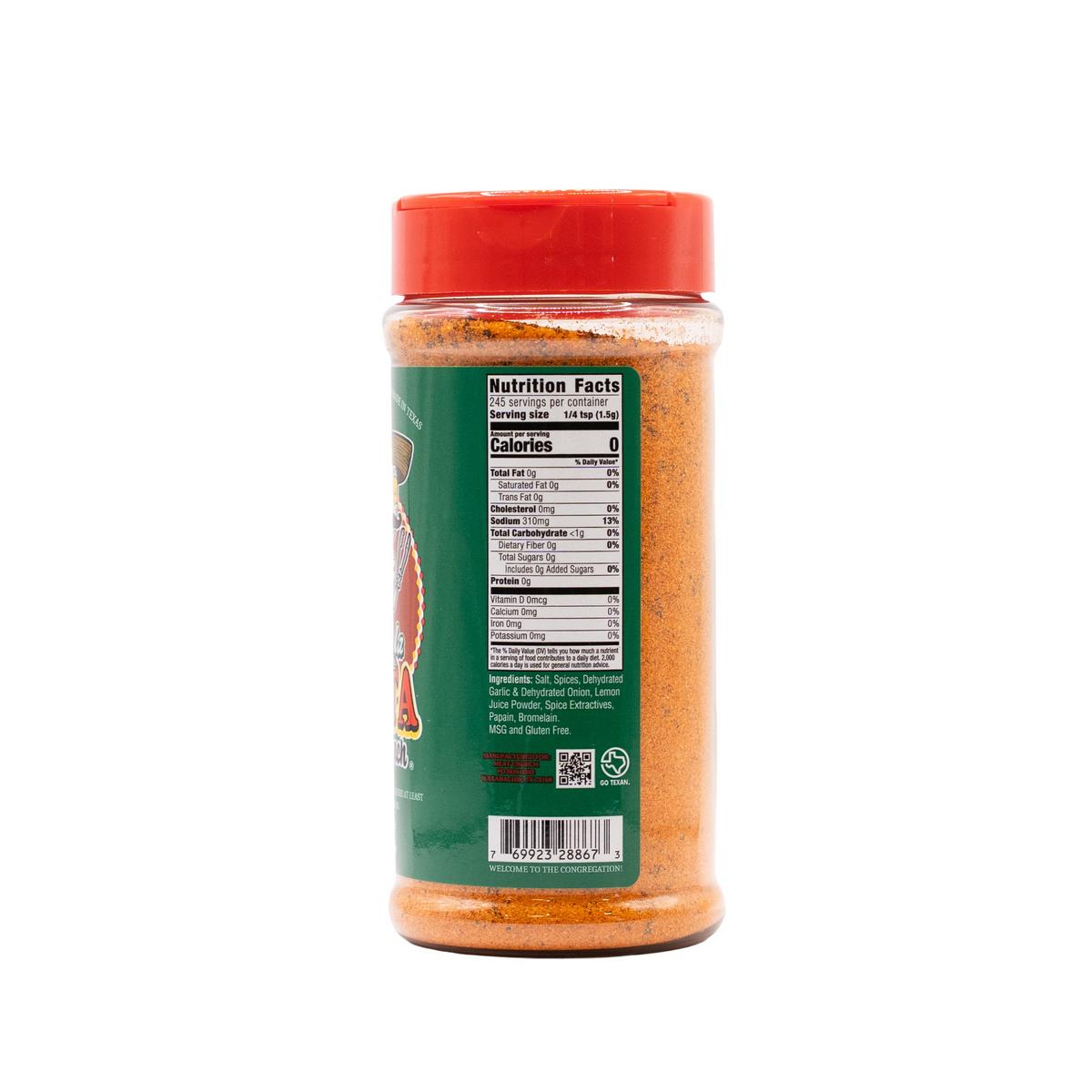 The Dia de la fajita! (Day of the Fajita!) Meat Church has lived in Texas, so they know a thing or two about the creation of the best Fajitas. Working with respected chefs and pitmasters until they reached the absolute perfect formula for Fajitas. This a southwestern fajita seasoning with a hint of citrus. Comes in a 14oz Shaker.