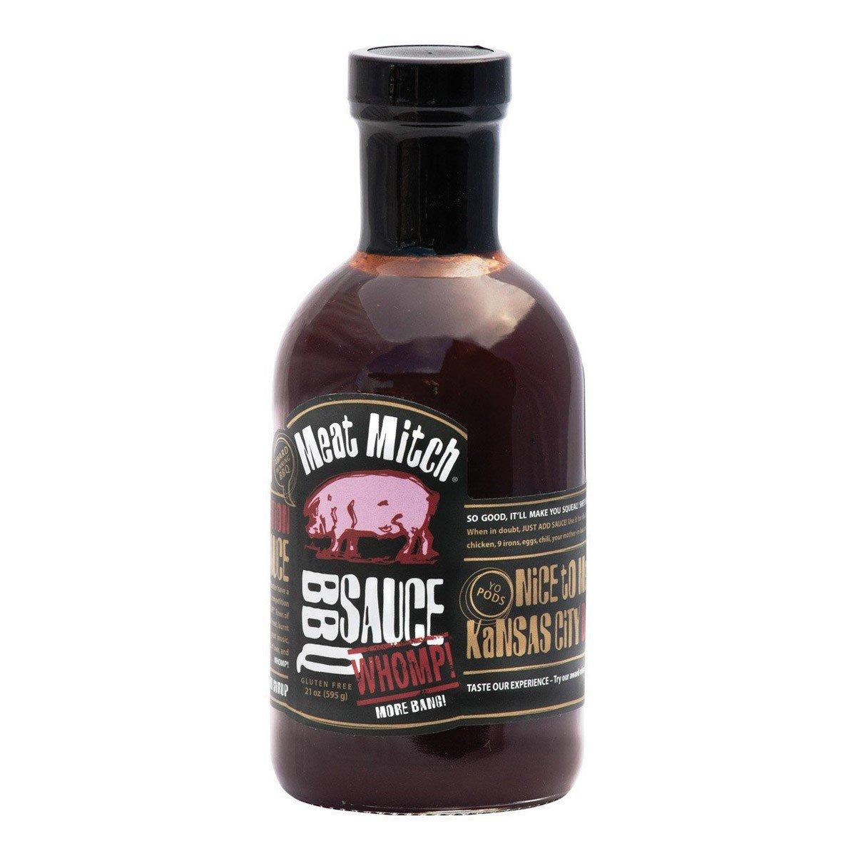 Meat Mitch Competition WHOMP! BBQ Sauce GLUTEN FREE SO GOOD, IT'LL MAKE YOU SQUEAL! SHE'S SWEET WITH HEAT, PODS! When in doubt, JUST ADD SAUCE! Use it for ribs, steak, brisket, pork, foie gras, chicken, 9 irons, eggs, chili, your mother-in-law, or use it to water flowers.