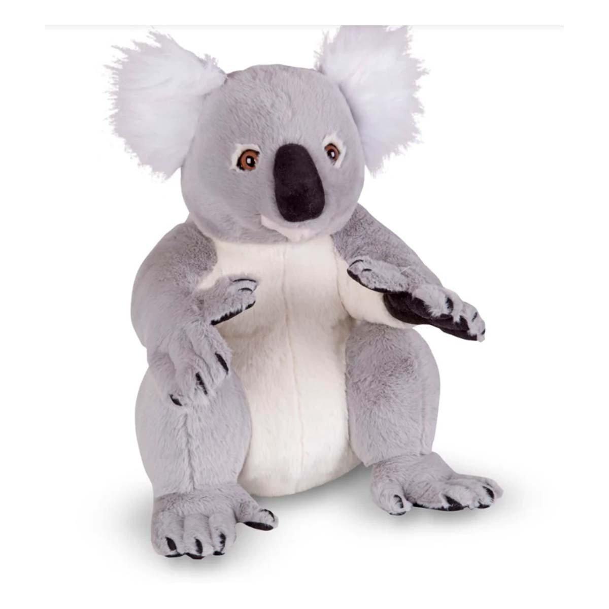 G'day, koala lovers! This adorable gray and white plush koala is ready to snuggle on a child's lap and become a lifelong friend. Its fur is so soft and pet-able, kids will never want to put it down! Realistic details include big shaggy ears, deep brown eyes, a squishy nose, pink tongue, sweet expression, and fingers and toes with soft, sewn-in "claws." The koala sits about 14 inches high.