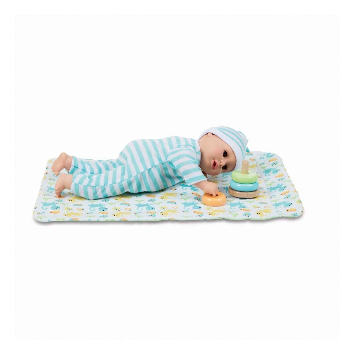 {"reviews":[],"offset":0,"limit":10,"total":0}"Full Description:\n17-piece diaper bag and realistic travel essentials sized just right for baby dolls and stuffed animals\n\nFeatures:\n\u003cul>\n\u003cli>Includes diaper (fits dolls up to 18 inches), changing mat\u003c/li>\n\u003cli>4 wipes in snap-shut container, washcloth, comb, sunscreen tube, baby bottle, squeeze snack pouch, two keys double-sided reusable activity card\u003c/li>\n\u003c/ul>\n\nSpecifications:\n\u003cul>\n\u003cli>13.5 x 10.7 x 3.5\u003c/li>\n\u003c/ul>\n"