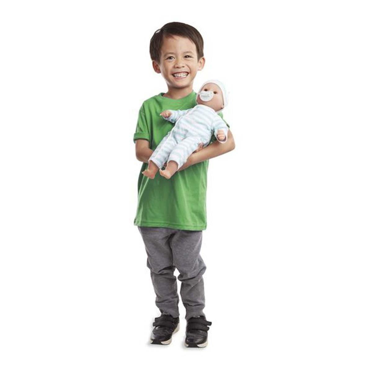 It's twice the fun with twin 15-inch dolls Luke and Lucy! They have adorable coordinating removable rompers and caps, eyes that open and close, and they can suck their thumbs or the included pacifiers. Just right for kids 18 months and older, their soft, huggable bodies are lightly scented, with wipe-clean, light skin-tone faces and limbs. Mine to Love dolls and accessories encourage empathy and help kids express themselves as they explore grown-up roles and responsibilities. A child's confidence and self-esteem blossom and grow with each nurturing moment of imaginative play. Luke and Lucy are just waiting for a child to call them "Mine to Love"!