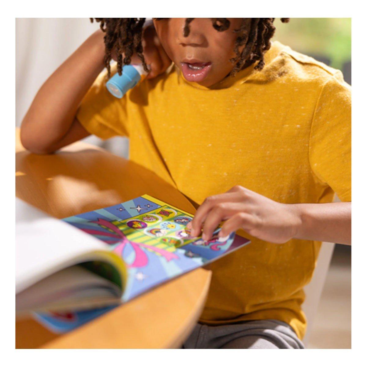Melissa & Doug Sticker WOW!® is a whole new way to play with stickers! Let the adorable, collectible Cupcake the Unicorn stamp, stamp, stamp its way through 24 pages of fun-filled, fantasy-themed counting, matching, and search-and-find activities. The refillable sticker stamper comes pre-loaded with a sticker stack of 300 assorted stickers – with 100 unique designs in every stack, each sticker is a surprise! Themed refill packs are sold separately and are compatible with any Sticker WOW!® sticker stamper. Stickers are not reusable, but are easy to remove if necessary. Fill in the activity pages and use for creative art projects, such as bookmarks, posters, cards, and more. Easy-to-remove stickers and the convenient on-the-go format with built-in sticker stamper storage makes Sticker WOW!® (patent pending) a great mess-free travel activity. Sticker WOW!® promotes fine motor skills, encourages creative play, and it’s satisfying, fidget fun! This product is certified by the Forest Stewardship Council. FSC certification ensures that products come from responsibly managed forests that provide environmental, social, and economic benefits, and that forests are protected for future generations. Please note that FSC certification applies to new inventory only (FSC C156584)