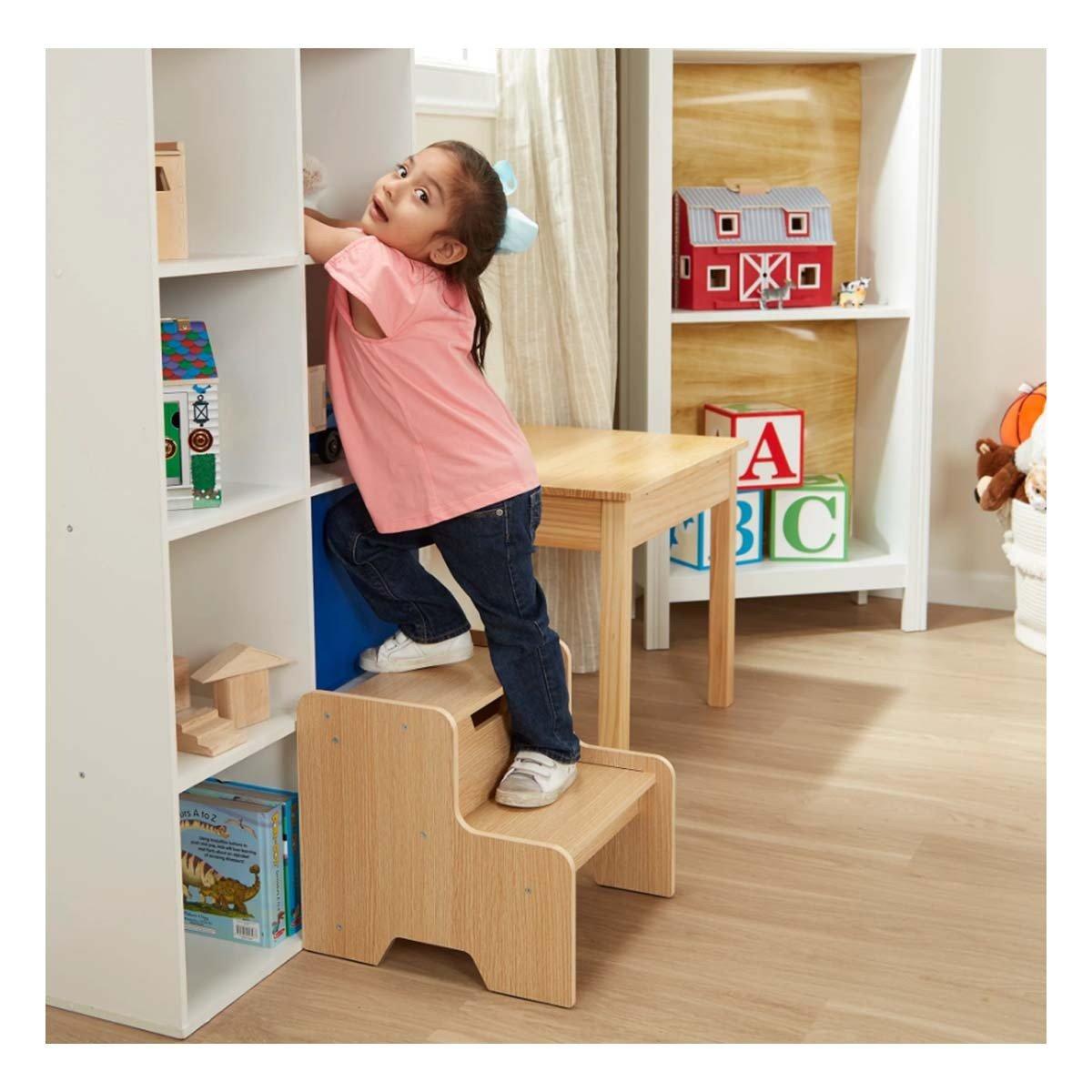 Give kids a leg up with this sturdy wooden two-step step stool! Available in natural, white, and espresso finish to fit with any home décor, this stool is great for helping kids up to 100 pounds reach books and toys in the playroom, climb into bed at night, brush their teeth and wash their hands at the bathroom sink, or help out in the kitchen at mealtimes! Easy to assemble with a Philips head screwdriver, not included.