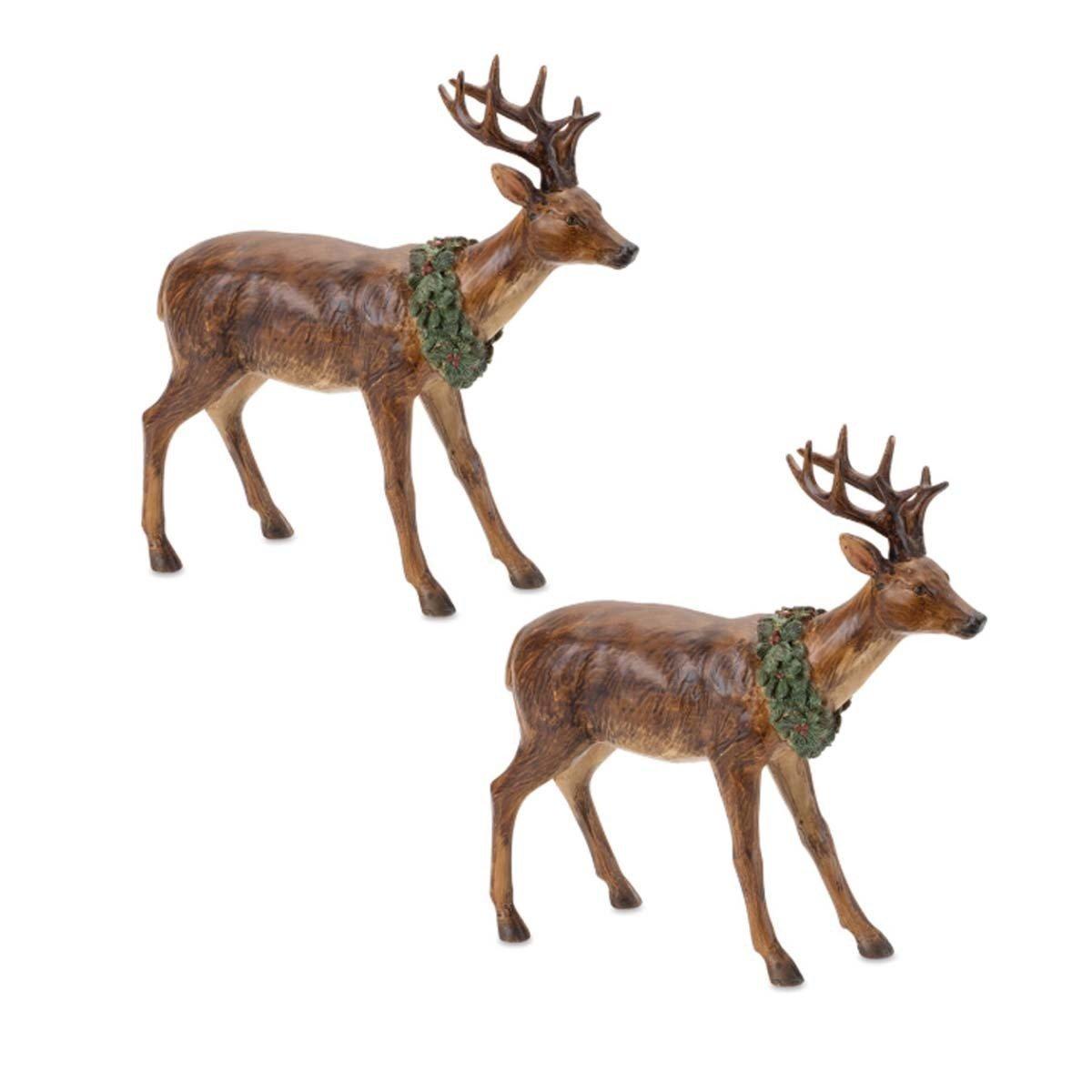 Melrose International 8in Winter Deer Figurine (Set of 2)