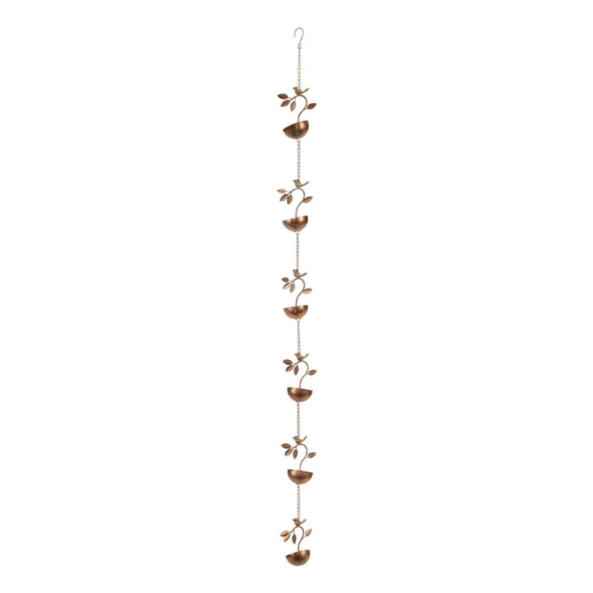 Decorate your home or garden this spring season with a Bird Rain Chain. Its sturdy iron metal construction and chic bronze finish and trendy bird branch design is guaranteed to last through the years. Rainwater collects and drips into the descneding cups on the chain. The soothing sound of water will create a relaxing ambiance in your garden retreat. Attract all the brids and butterflies to your yard with this enticing piece.