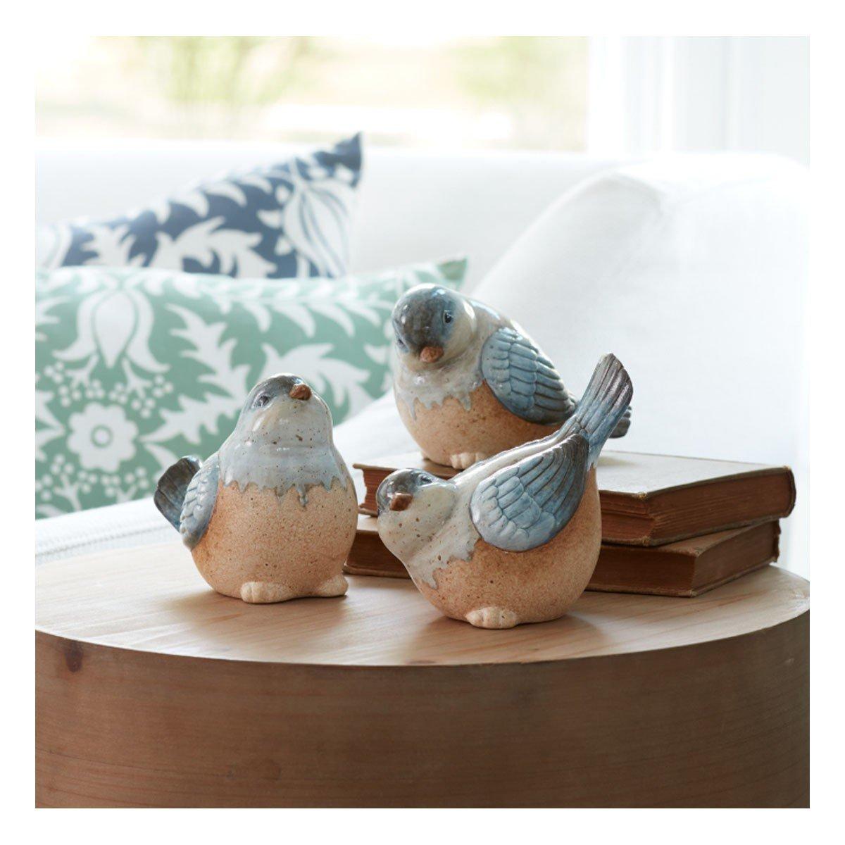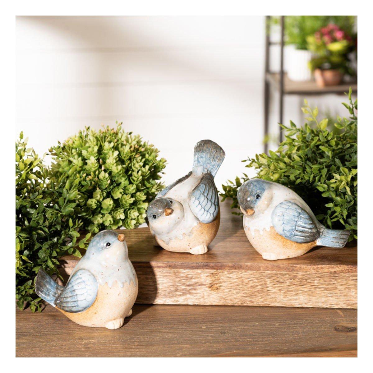 Bring serenity into your home this spring season with a stunning set of Bird Figurines. Featuring three assorted designs, this set is a great fit for your country cottage or farmhouse style of decor. The cool beige and blue tones paired with the rustic unglazed accents are perfect to create a memorable display. The quality ceramic composition is sure to endure for seasons to come. Display the pieces on your bookshelf or coffee table to add sophistication, or gift them to a bird-lover in your life to share the beauty!