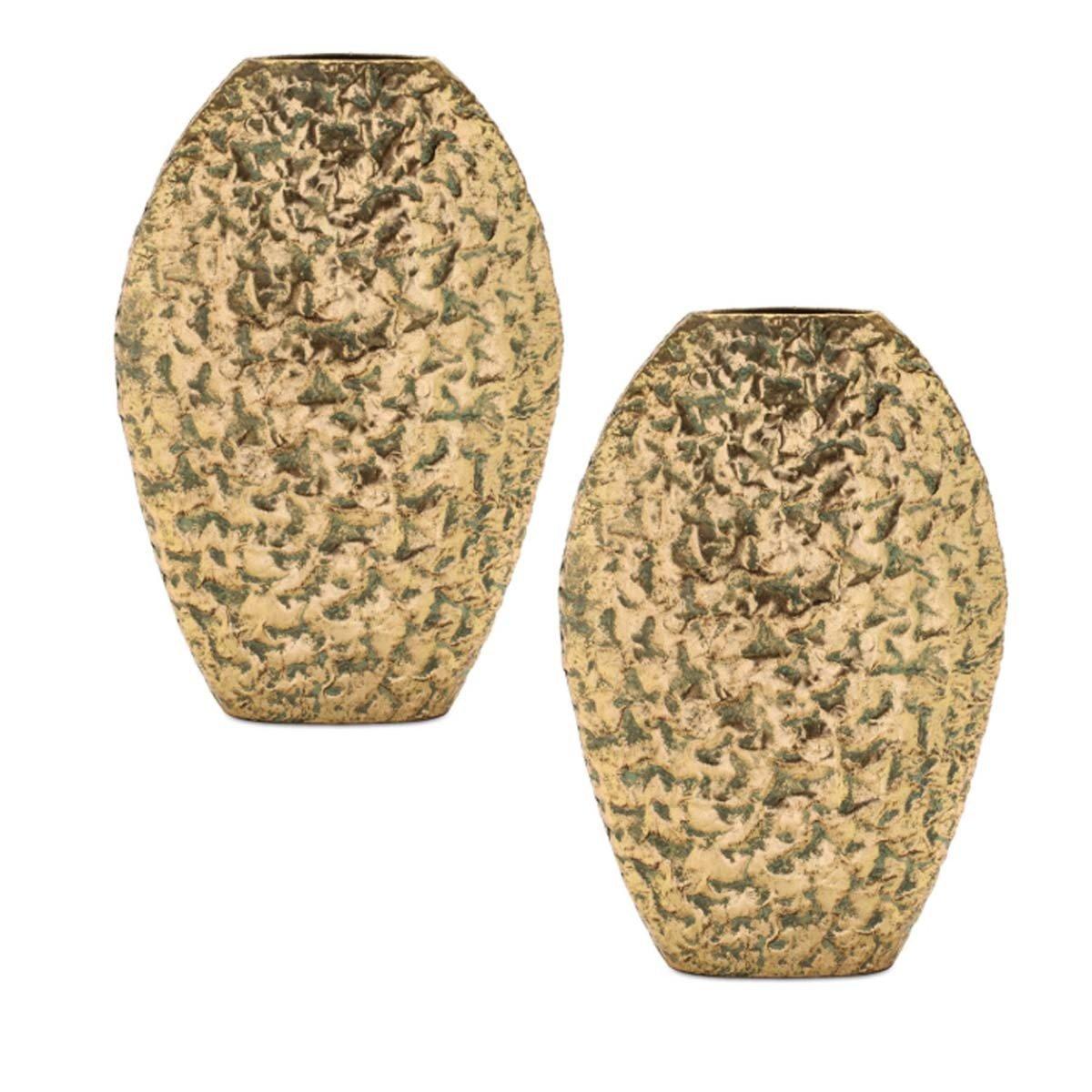 Elevate your décor with the Distressed Flat Metal Vase Set. Featuring a chic gold tone and metallic finish, these vases boast a distressed texture that adds character and style. Their modern flat shape offers a sleek, contemporary look perfect for any room. Sold in a set of two matching pieces, they can be displayed on your bookshelf, mantle, or as a striking centerpiece on a coffee or end table. Add a touch of nature with dried florals or pampas stems, making these vases an ideal choice for contemporary, luxury, or glam-style interiors.