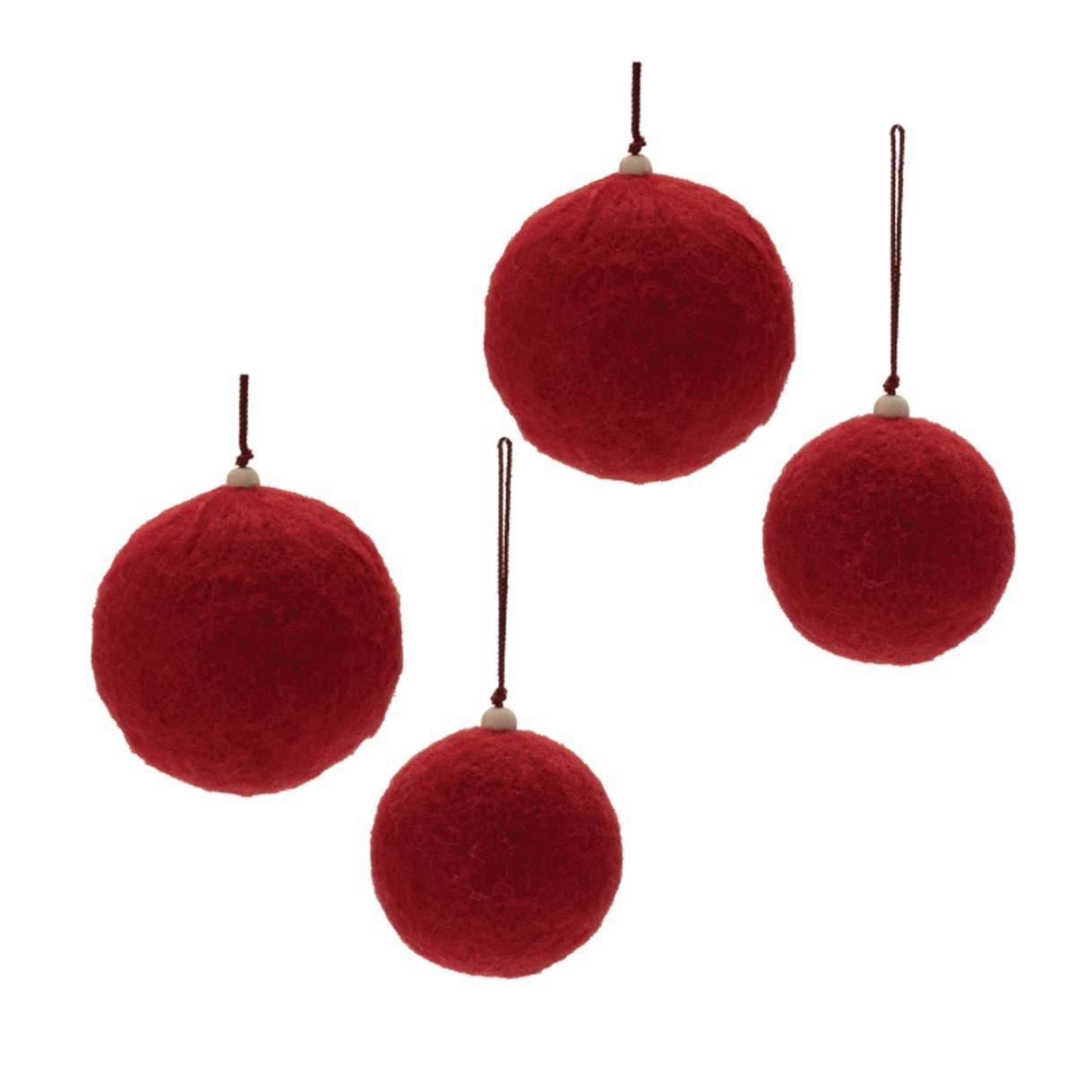 These charming Felt Fabric Ball Ornaments bring a rustic, cozy feel to your holiday decor. Crafted in festive red tones and soft felt fabric, each ornament features a traditional ball shape and is accented with rustic wooden bead ornament caps. The delicate string hanger makes it easy to display on your Christmas tree or in your holiday wreath and garland. Sold in a set of 4, with two assorted sizes, these ornaments add a warm, inviting touch to your seasonal decor.