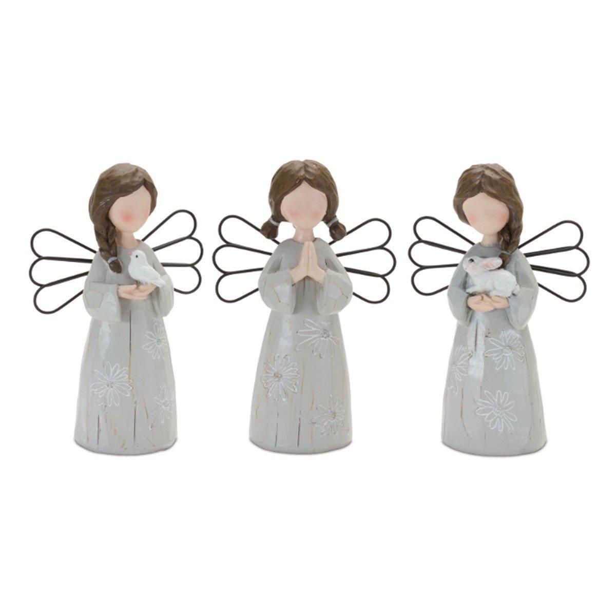 Melrose International Floral Etched Angel Figurine (Set of 3)