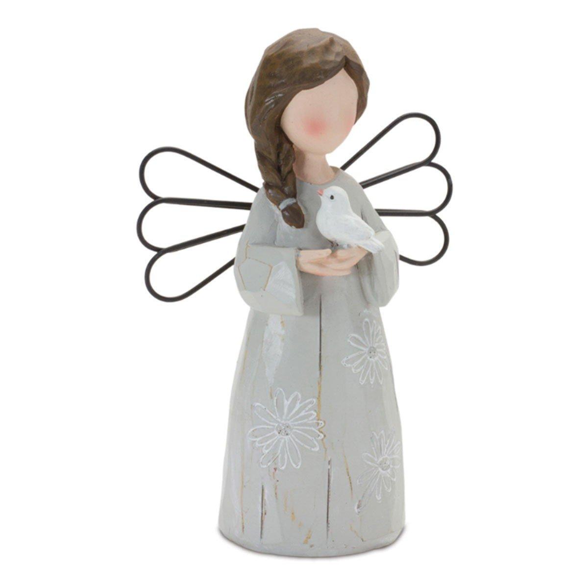 Elevate any space with these beautiful Floral Etched Angel Figurines and add a serene touch to your home. Crafted from premium resin materials, our figurines feature an elegant and modern etched floral design in neutral grey and beige tones. With a distressed finish and animal accents including bird and bunny, these unique pieces will bring sophistication and style to your living room, office, or bedroom. Whether you're looking to add a personal touch or enhance any space, these Floral Etched Angel Figurines are perfect for the job.