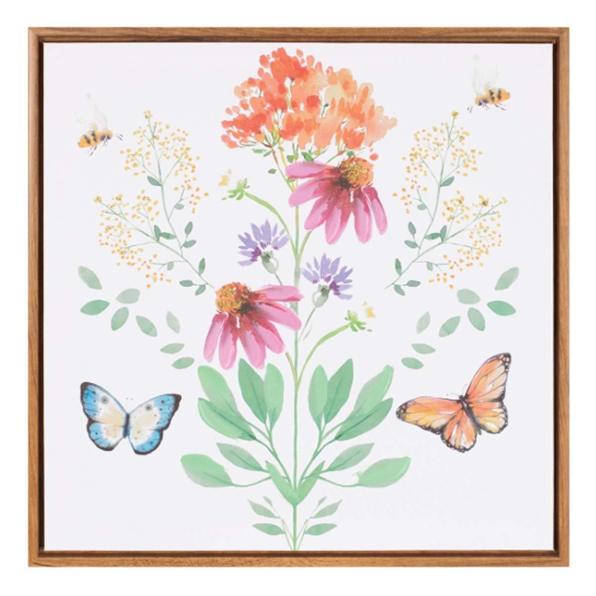 Melrose International Framed Floral and Butterfly Wall Art 15.5"SQ