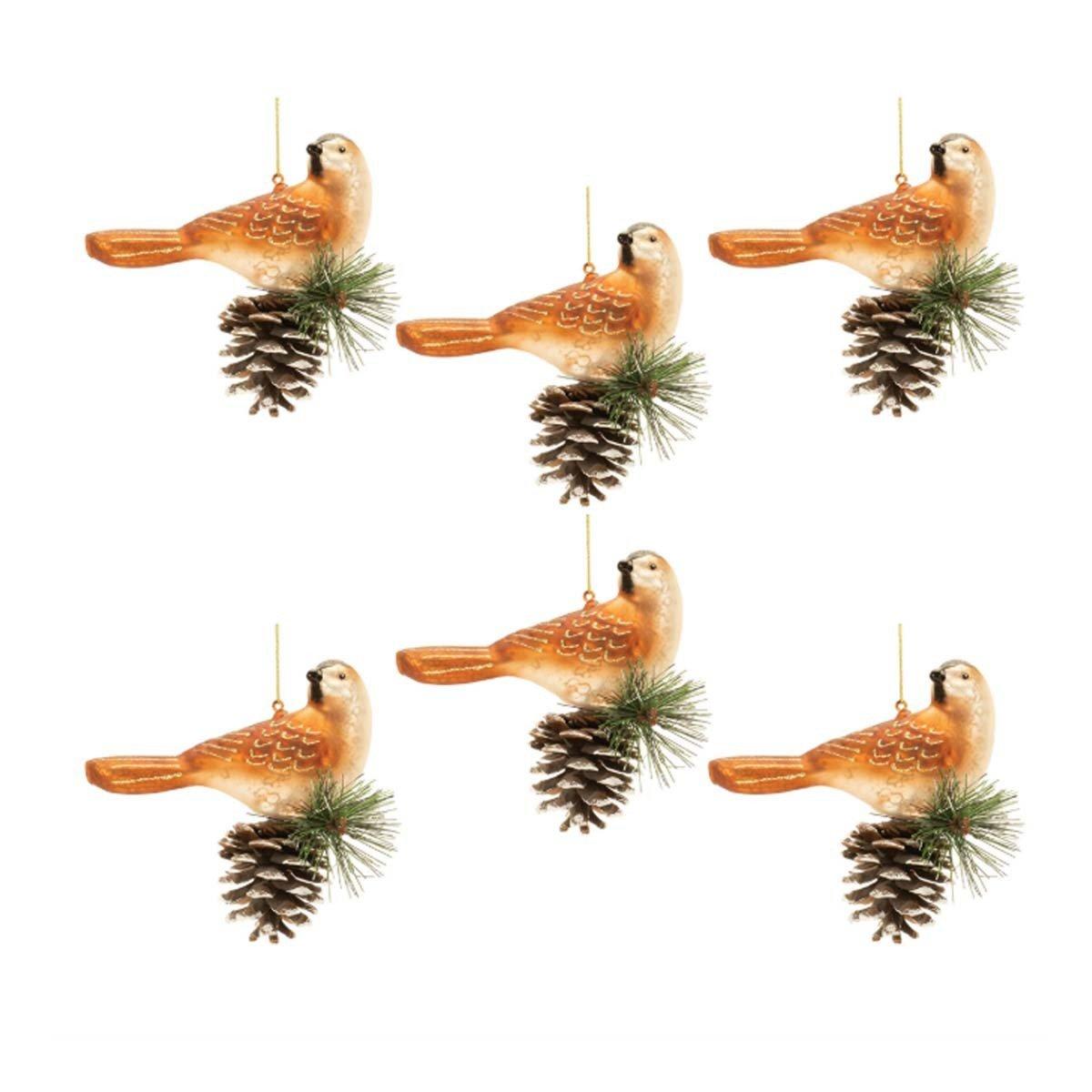 Melrose International Glittered Glass Bird and Piencone Ornament (Set of 6)