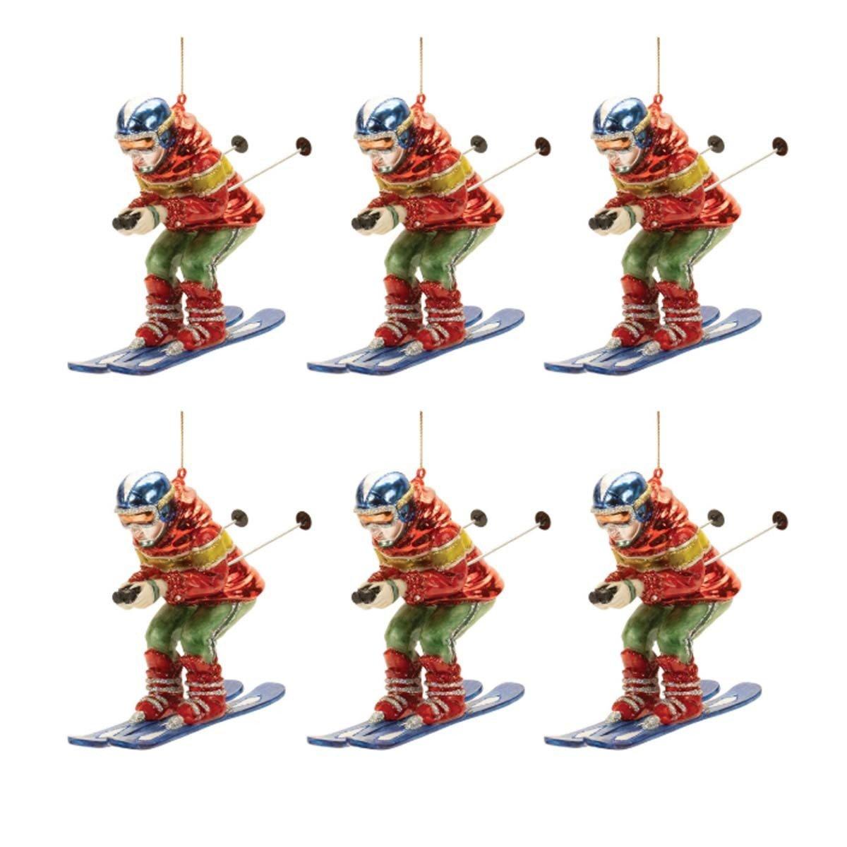 Melrose International Glittered Glass Skiier Ornament (Set of 6)