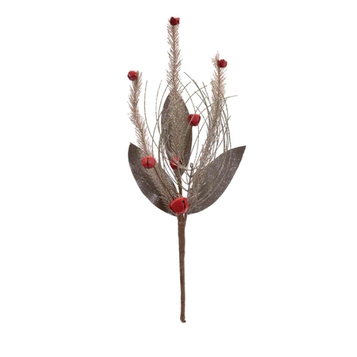 Bring classic Christmas charm to your holiday décor with this Glittered Pine & Sleigh Bell Spray set. Designed with festive green pine foliage, rich red magnolia leaves, and multicolored sleigh bells, this spray is accented with chic glittered touches for a joyful, seasonal sparkle. The wired stem and flexible branches allow for sturdy, customizable styling—perfect for Christmas wreaths, garlands, floral centerpieces, or festive porch pots. Sold in a set of six, these sprays add a warm and cheerful holiday touch to any space.