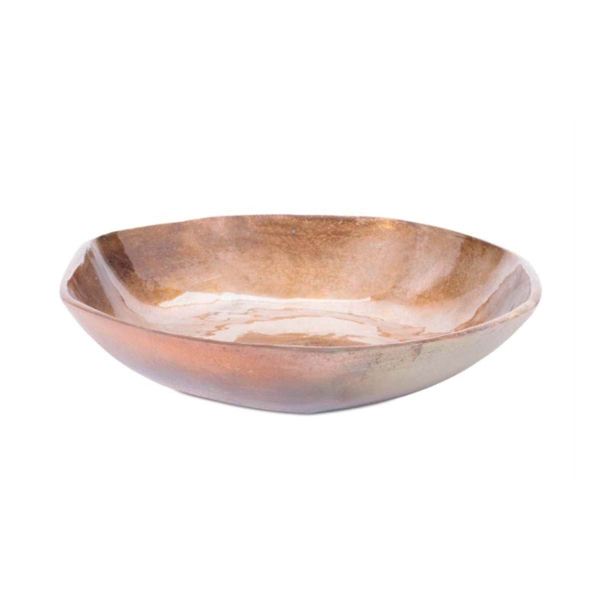 Enhance your space with the Metallic Aluminum Bowl in chic gold tones. Featuring a glossy finish with metallic accents and a distressed, rounded shape, this elegant bowl is perfect for your coffee table or end table. Use it to display decorative filler items like orbs, pebbles, or other accessories to make a statement. A stunning addition to contemporary or luxury glam home décor styles.