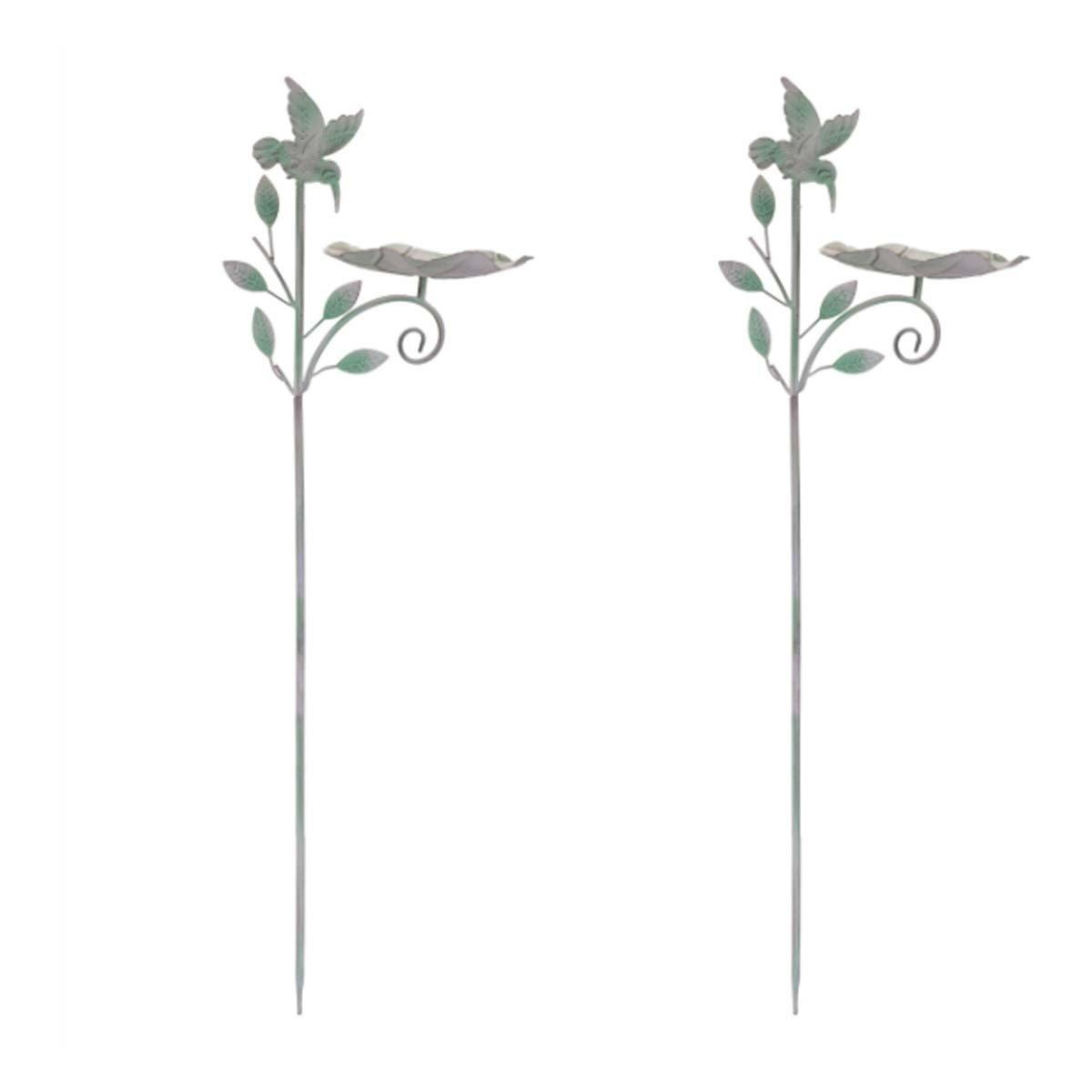 Melrose International Iron Hummingbird Leaf Bird Feeder Garden Stake (Set of 2)
