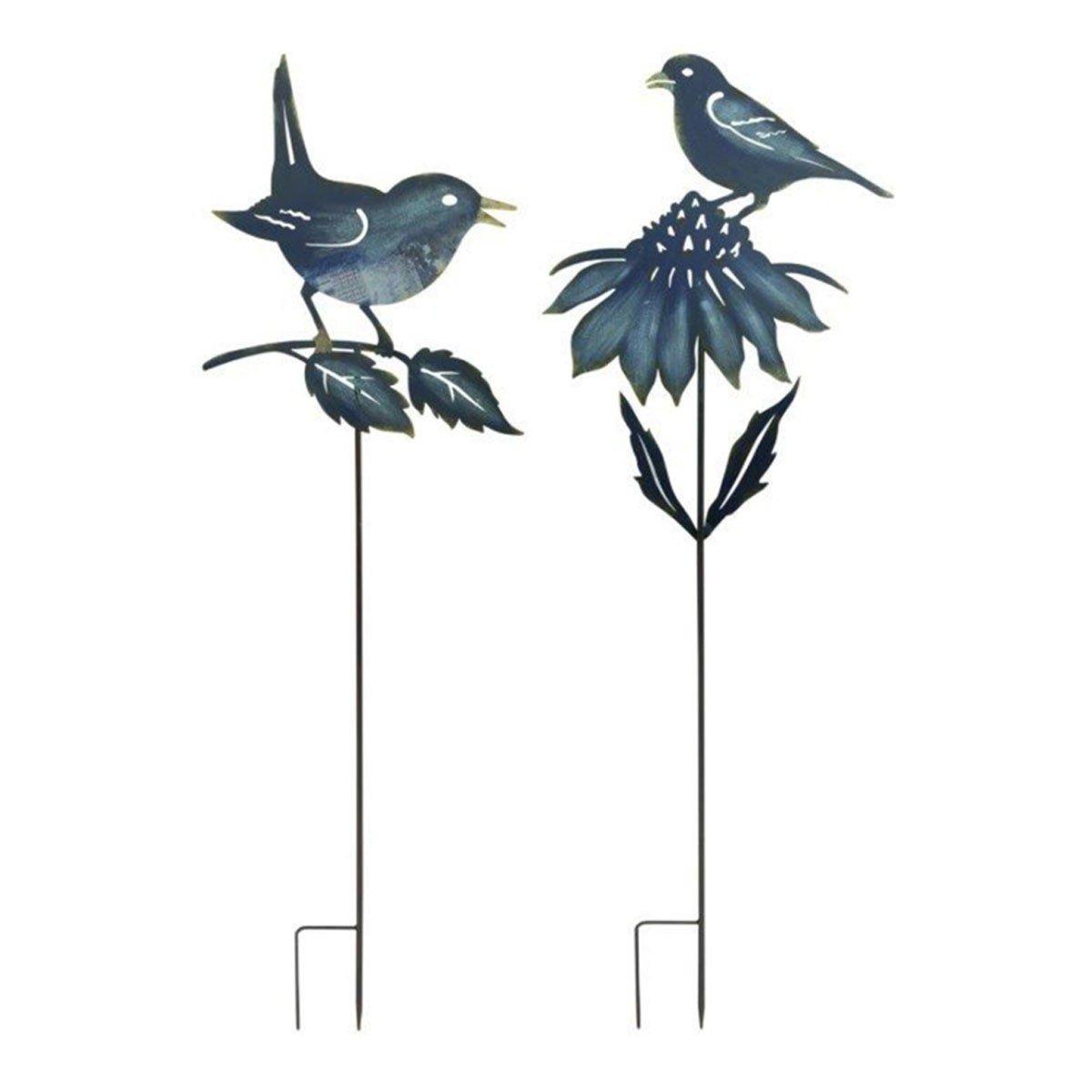 Melrose International Iron Metal Cut Out Bird and Flower Garden Stake (Set of 2)