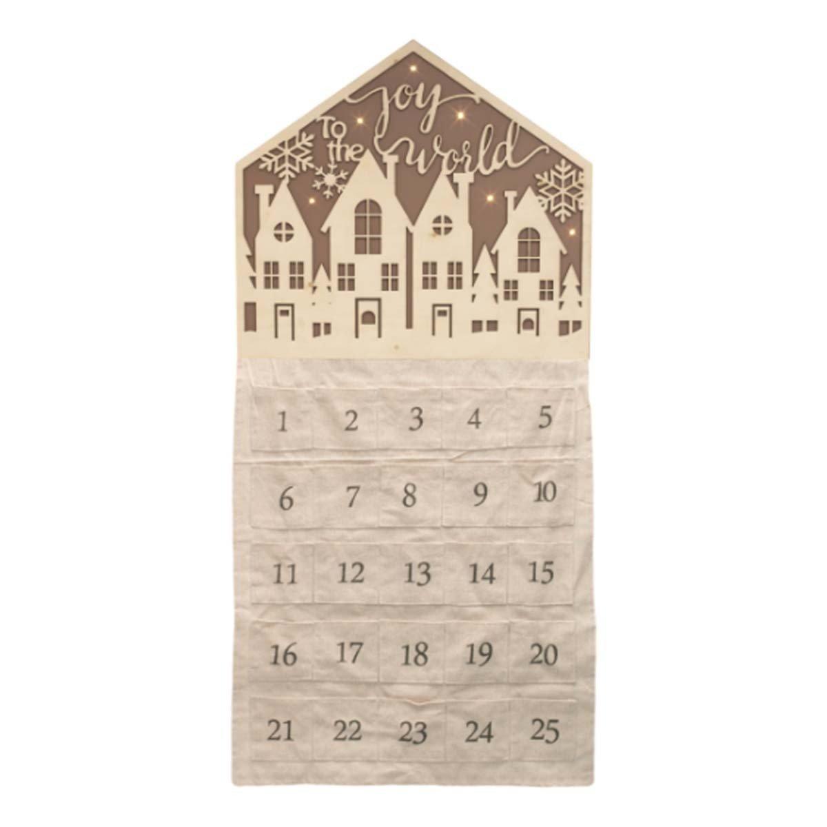 Add a touch of festive cheer with this LED Joy to the World Christmas countdown. Featuring a cozy village outline and a traditional "Joy to the World" sentiment, this piece is designed to brighten your home with its charming LED light feature. Perfect for counting down the days to Christmas, this countdown sign brings warmth and glow to your living room or mantle. The piece comes with two sawtooth hooks on the back for securing it safely to the wall of your home. Simply update the count each day and enjoy the holiday spirit!