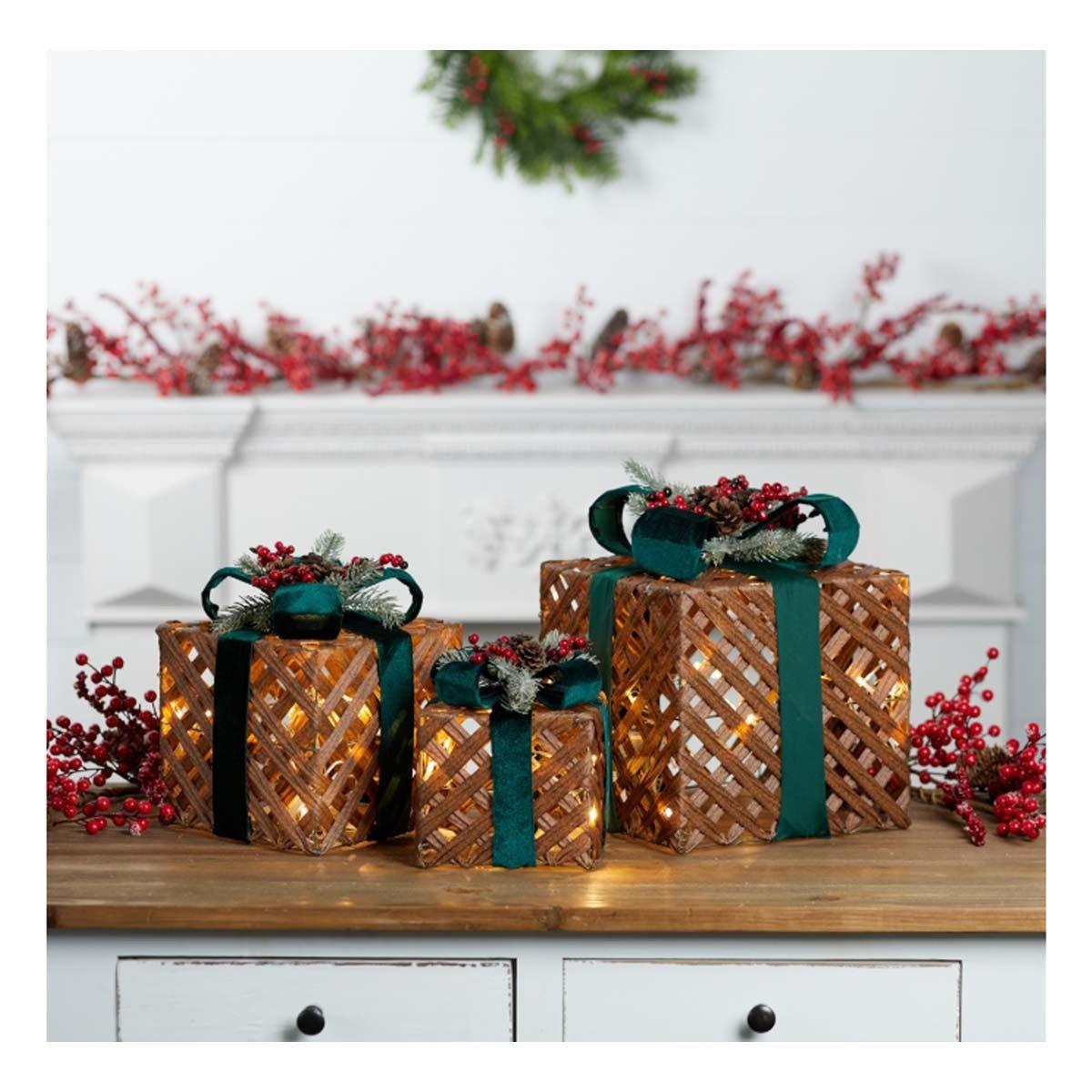 Melrose International LED Woven Packages with Bow Arrangement (Set of 3)