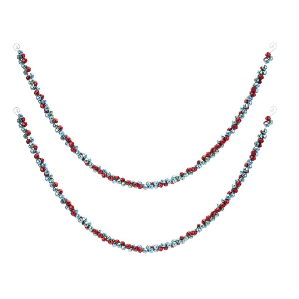 Bring festive charm to your holiday decor with this Metal Sleigh Bell Cluster Garland. Featuring a vibrant mix of wintry red and blue tones, this garland showcases a shiny sleigh bell cluster design that captures the spirit of the season. Sold in a set of two matching pieces, these garlands are perfect for draping on your Christmas tree, mantle, or weaving into wreaths and garlands to add a traditional touch with a pop of color. Whether you’re creating a classic holiday display or adding a fun twist to your seasonal decor, these sleigh bells make a joyful statement.