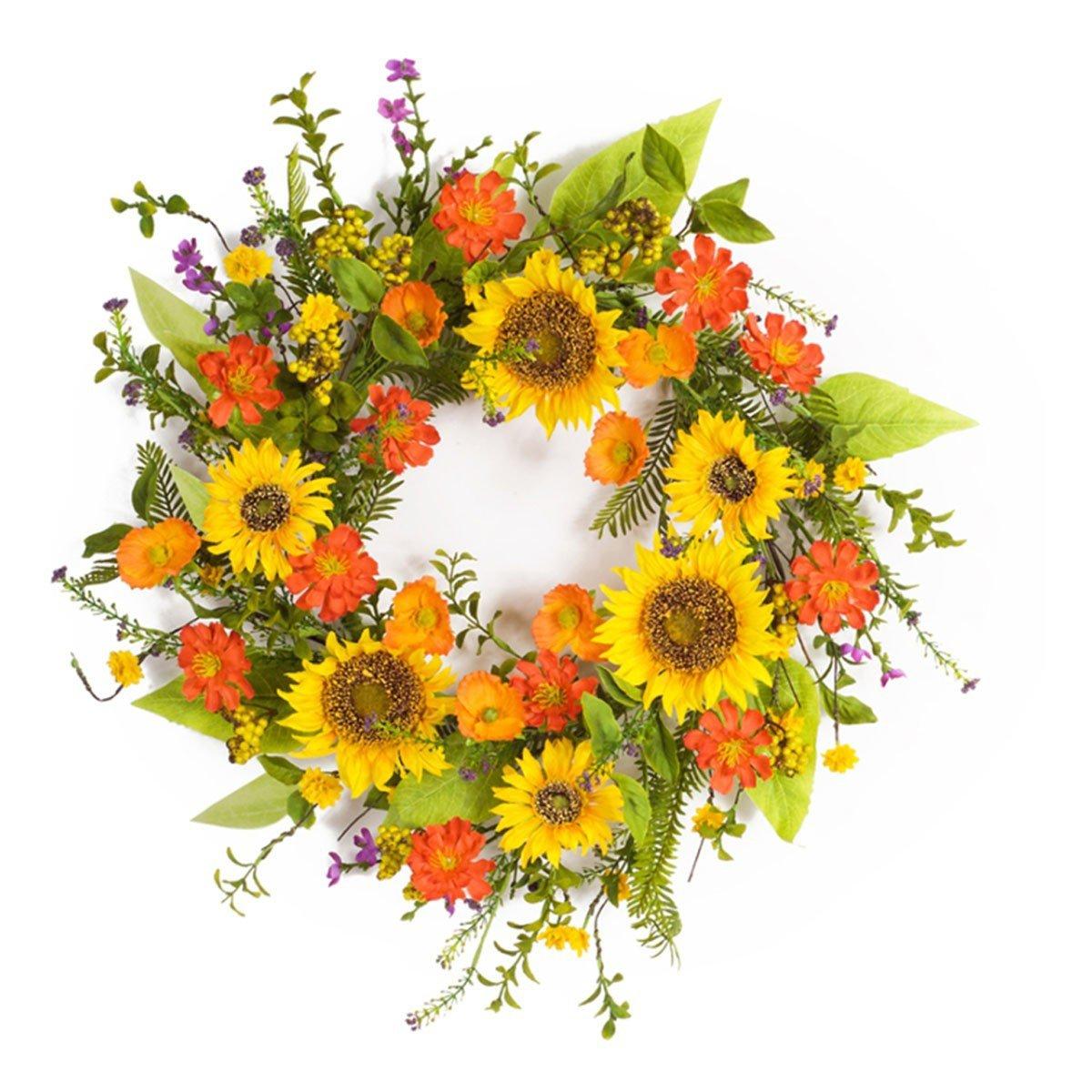Melrose International Mixed Sunflower Floral Wreath 22"D