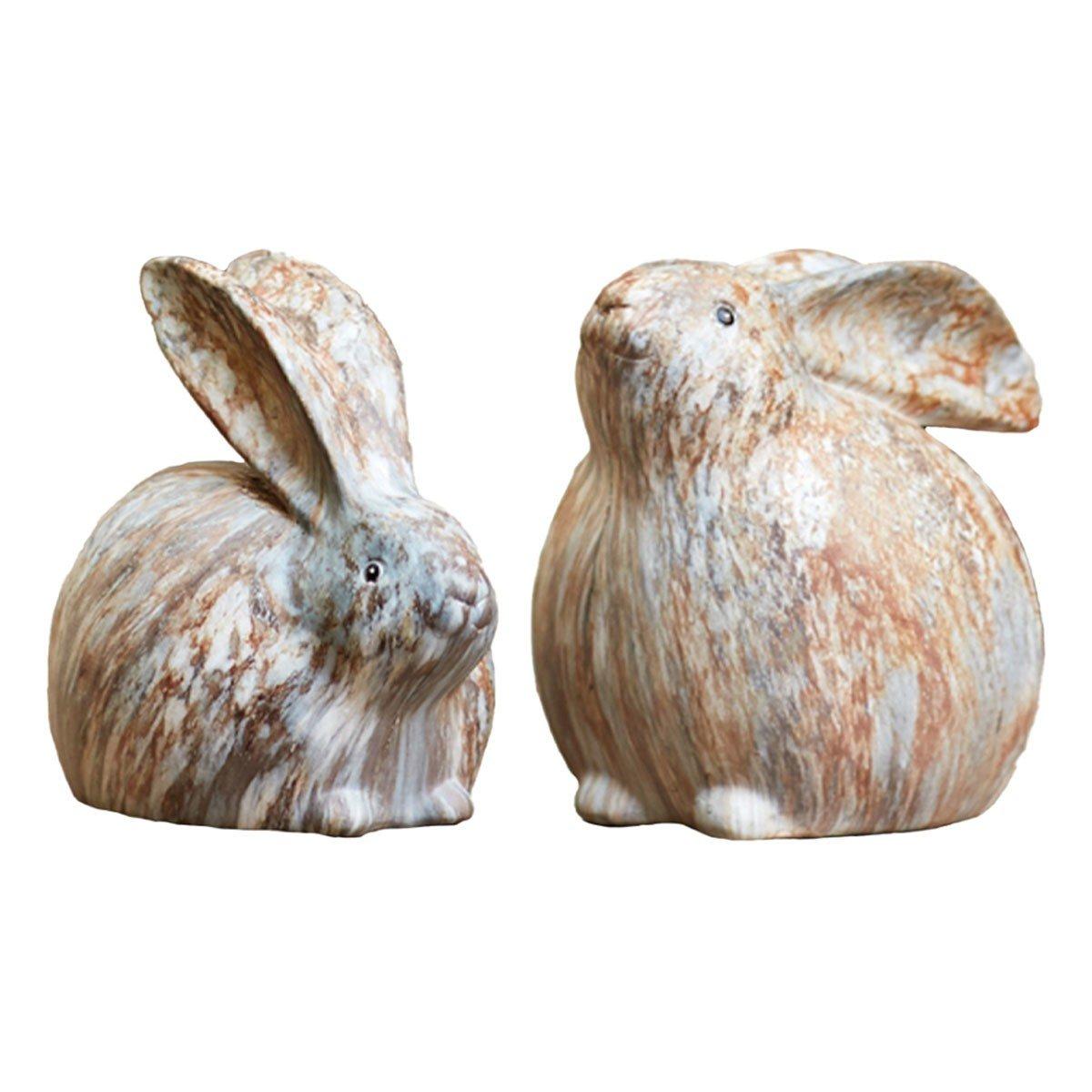 Melrose International Modern Bunny Rabbit Figurine with Marble Finish (Set of 2)