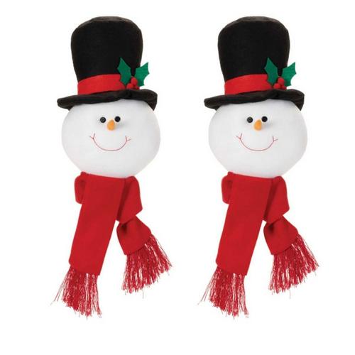 Bring whimsical holiday cheer to your décor with this set of Plush Snowman Head Ornaments. Designed in festive red and white tones, these playful snowman heads are crafted from soft plush fabric and accented with a scarf and top hat for added charm. The delicate string hanger makes it easy to add these jolly characters to your Christmas tree, pine wreath, or seasonal floral arrangement. Perfect for adding a fun, cozy touch to any holiday display, this set of 6 snowman ornaments are sure to bring smiles to all who see them.
