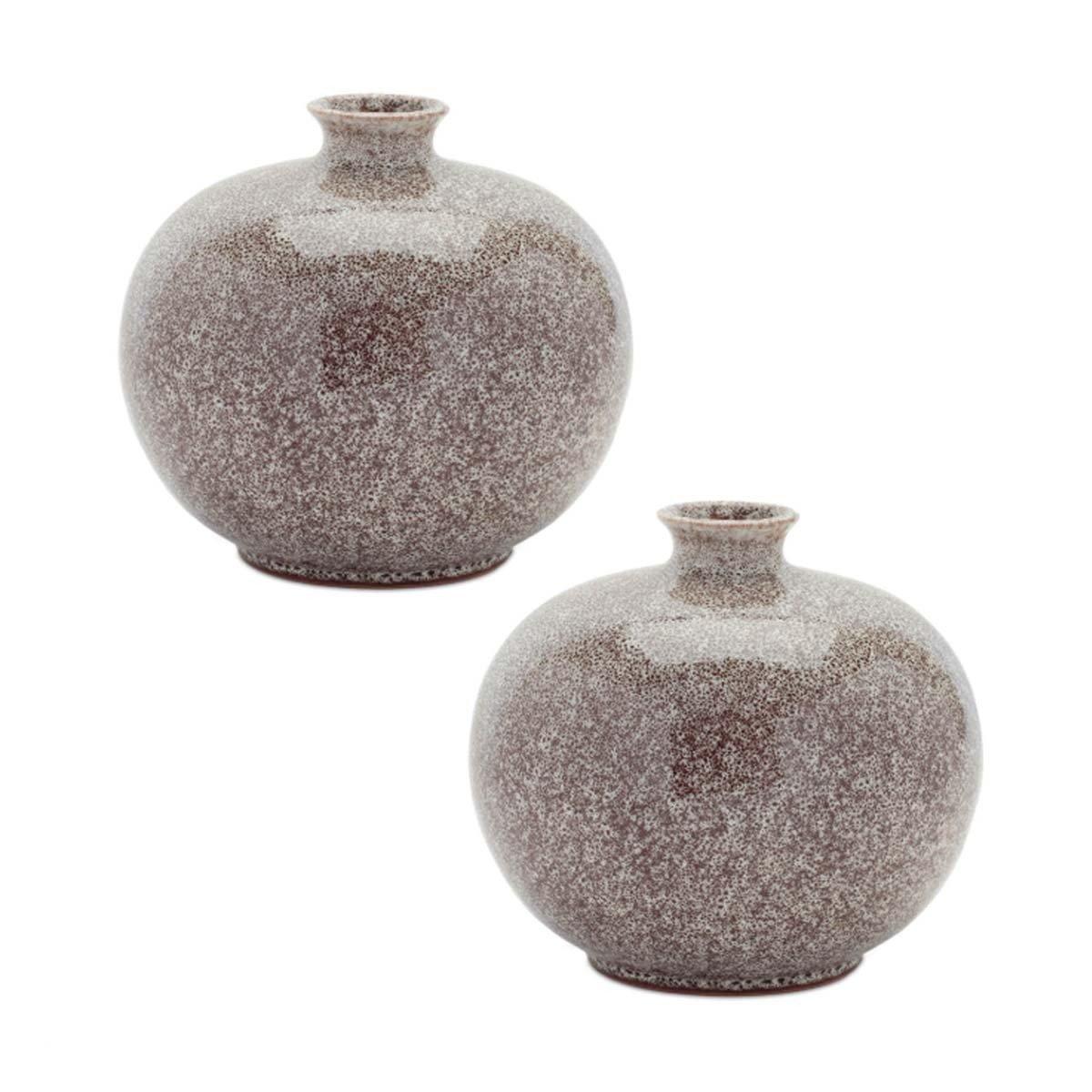 Add earthy charm to your home with this set of two speckled ceramic vases. Featuring a unique blend of earthy brown and beige tones with a shiny glazed finish, these vases showcase an abstract speckled paint design. With a modern rounded shape and bottle neck opening, these vases are perfect for displaying on your bookshelf, mantle, coffee table, or end table. Pair them with a few fresh garden stems or dried florals for an added touch of nature. Sold as a set of two matching pieces, they are an ideal fit for modern farmhouse or rustic-style décor.