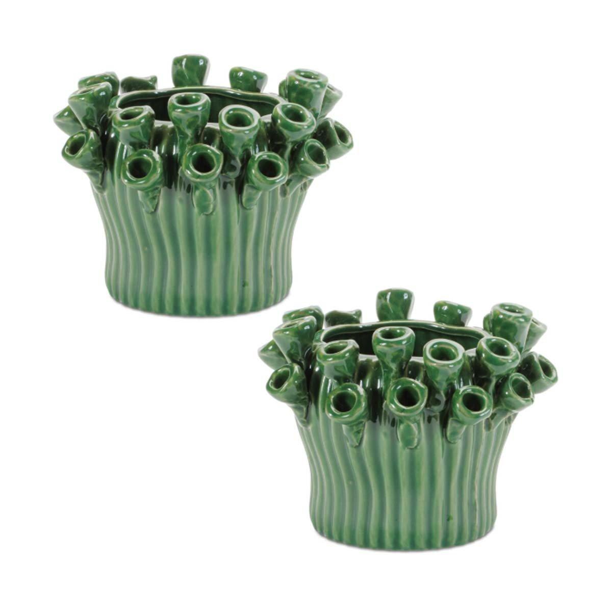 Melrose International Storeware 5in Bud Vase with Floral Accent (Set of 2)