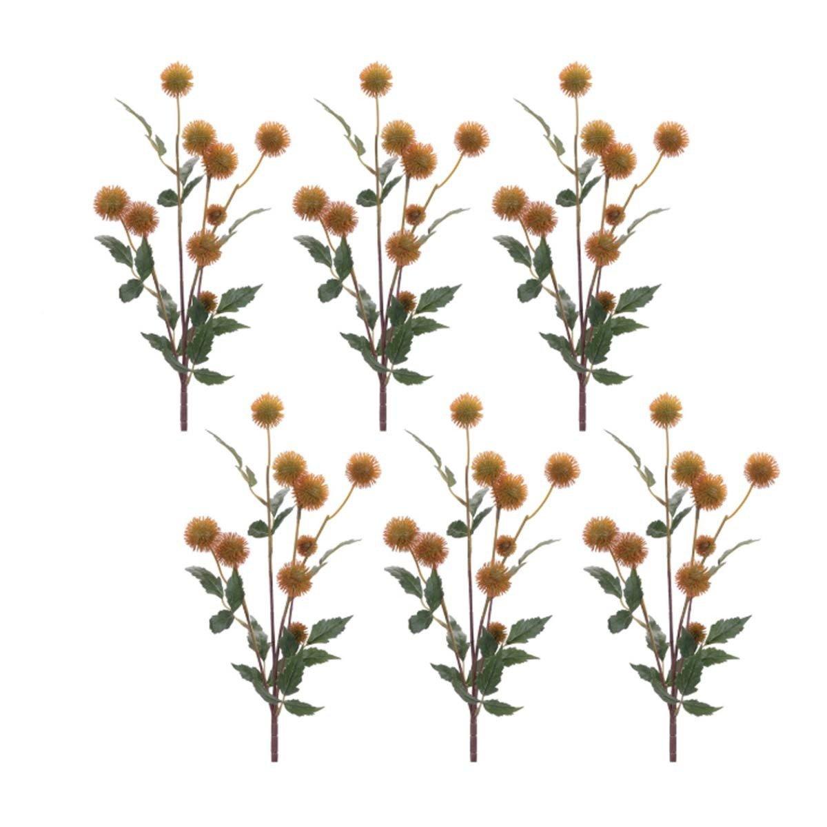 Add a unique, vibrant touch to your décor with the Thistle Pod Branch. Featuring bright orange thistle pods with variegated accents and deep green foliage, this faux stem is perfect for adding a pop of natural color to your home. The wired stems and branches offer sturdy and versatile use, making this set of six pieces ideal for vases, spring floral arrangements, or as part of a custom wreath or garland to make a bold statement.