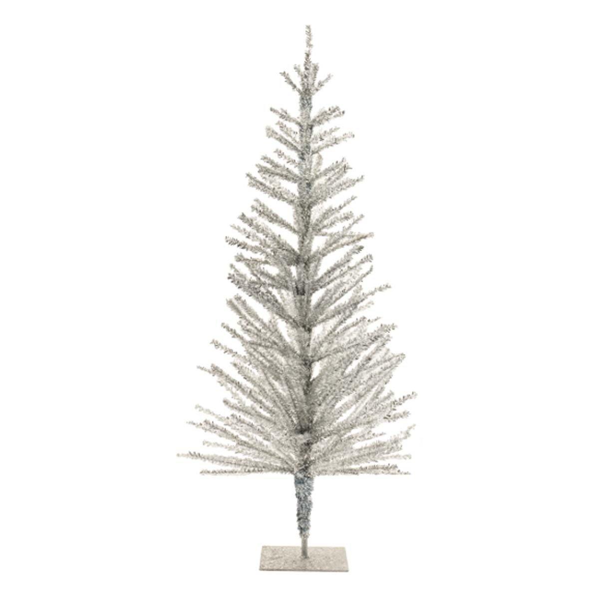 Elevate your holiday decor with this dazzling 3' Silver Tinsel Pine Tree. Designed with shimmering silver tones and a traditional pine tree silhouette, this festive accent adds a radiant touch to any space. Supported by a sturdy metal base, it’s perfect for displaying in your entryway, beside your fireplace mantel, or as part of a holiday centerpiece. Let this metallic beauty bring a bright and cheerful holiday glow to your home.