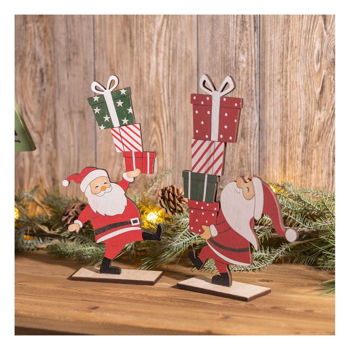 Melrose International Wooden Santa w/ Presents Figurines (Set of 2)