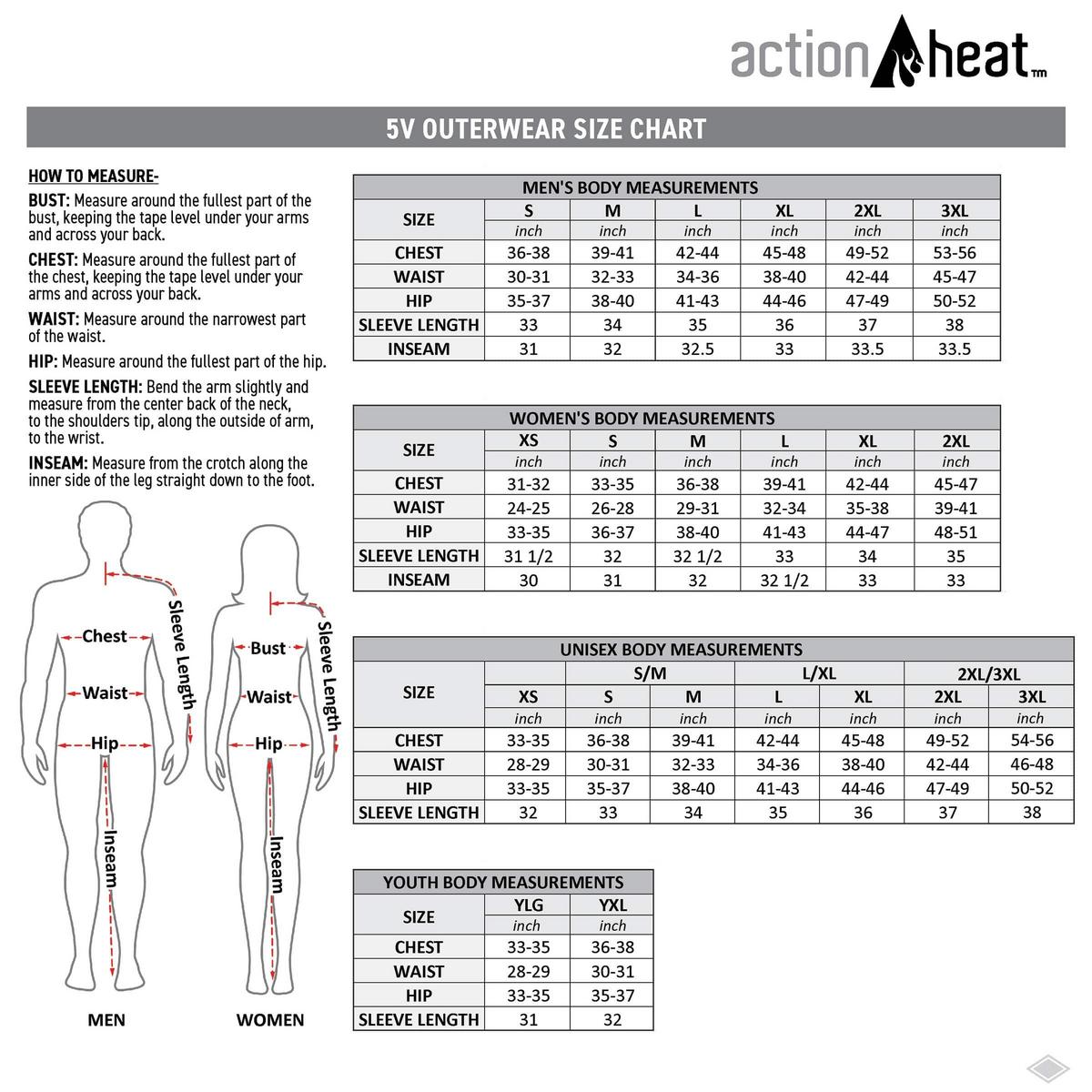 ActionHeat heated garments use FAR infrared heating and ActionWave heat reflective technology to deliver hours of heat and comfort. ActionHeat allows you to stay warming and enjoy outdoor winter activities longer than ever before.
