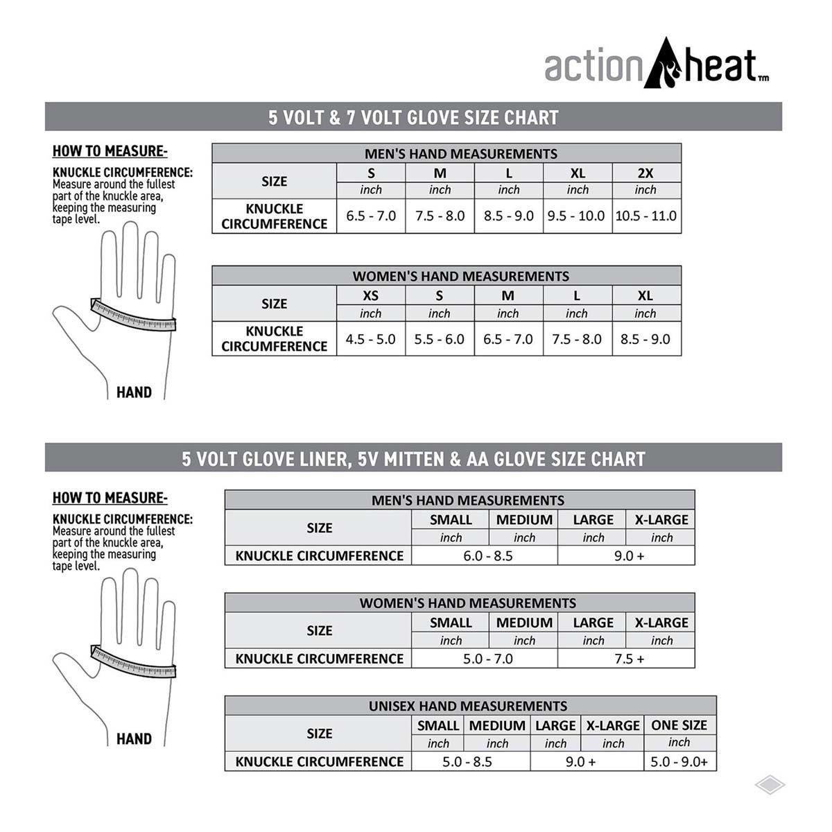 The ActionHeat 5V battery heated slim fit fleece gloves offers unparalleled comfort, while providing the perfect combination of quality, and heating performance. The durable & lightweight fleece is soft to touch and provides excellent fit for your hand. The heating elements are perfectly positioned along your fingers and thumbs so the heat circulates throughout your entire hand for complete warmth. Slim batteries fit into a discreet pocket on the extended gauntlet for a comfortable fit. These gloves are great for walking your dog, going to a ballgame, or any other cold-weather activity.