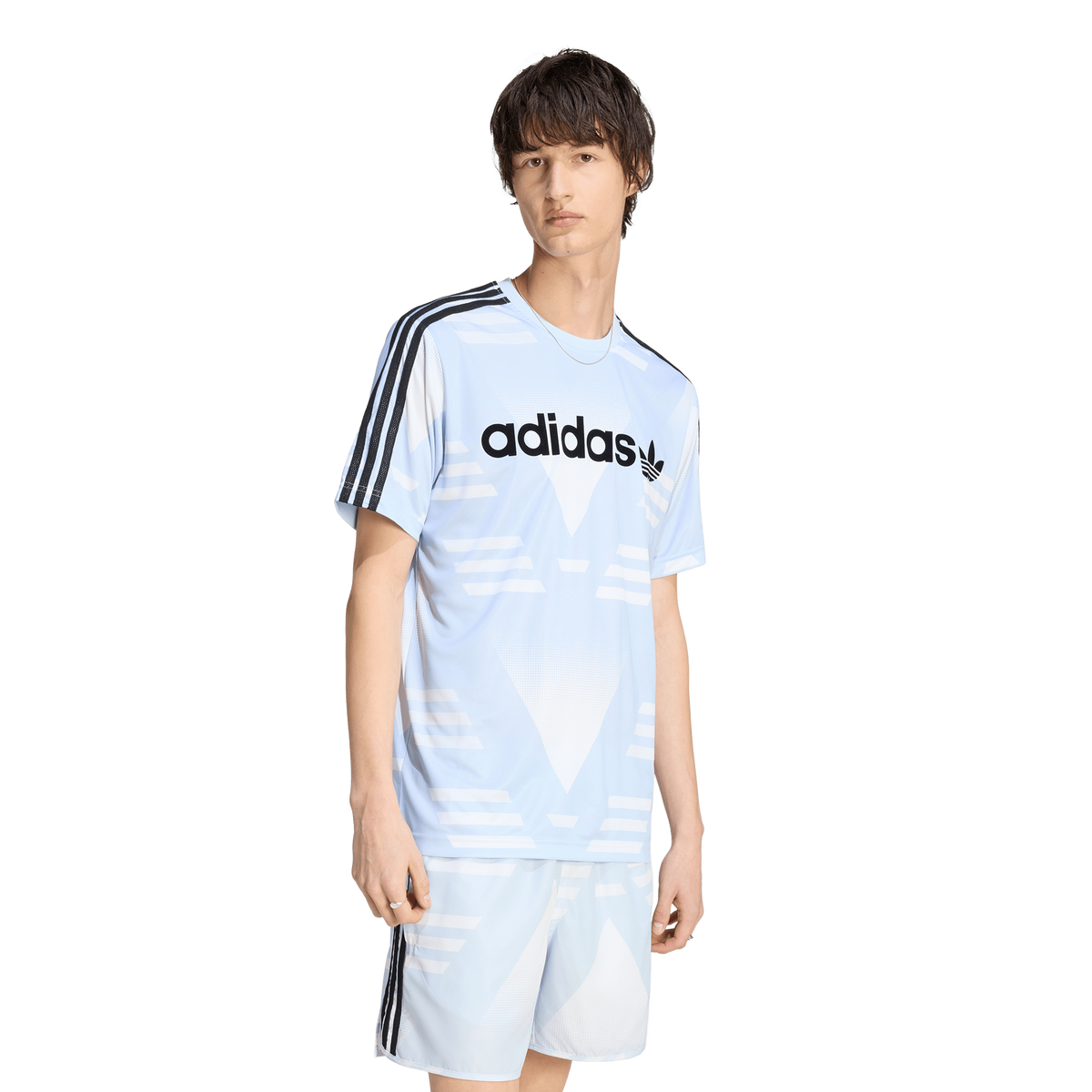 The BRUISED BANANA LOOSE SPONSORED JERSEY redefines sport classic with a bold reinterpretation of archival designs. This short-sleeve jersey offers a regular fit, combining a round neck with a knit construction for comfortable everyday wear. The vibrant color palette and expressive prints make it a perfect choice for those looking to make a statement this summer. Step into a world where classic football silhouettes meet modern style.