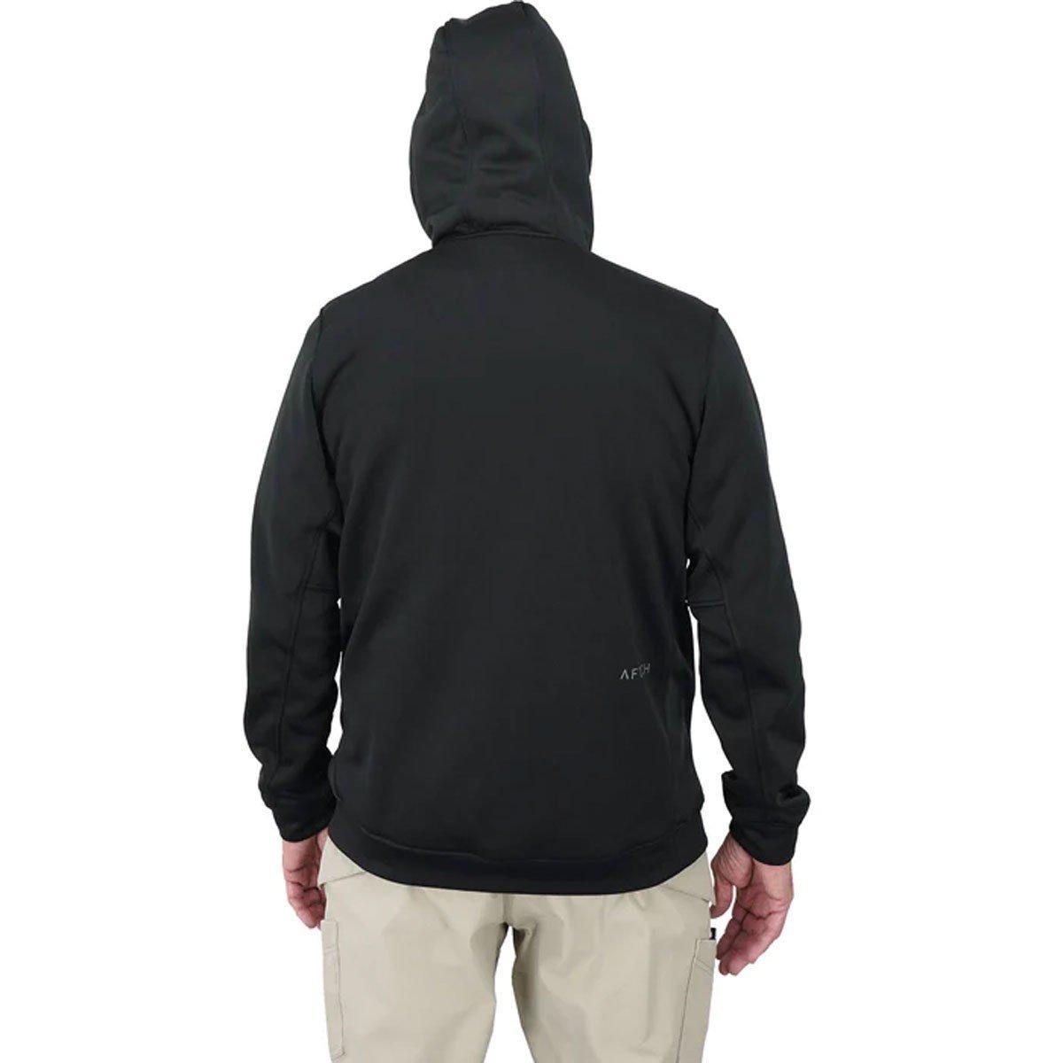 Reaper Fishing Sweatshirt with an integrated face mask and neck warmer. "Game Changer?" Too cliché for our taste, but the Reaper fleece fishing hoodie is definitely making the game a lot more comfortable. In this performance fleece hoodie AFTCO delivers with technical features like laser cut ventilation on mask and underarm area, a hood with our cinch shock cord anchoring system designed specifically for both bass fishing and saltwater fisherman as they run in their boats at high speeds, Block Tapey pocket closure on the front pouch pocket, AFGUARD stain release and a toasty 100% polybonded microfleece fabric. No disrespect to our favorite cotton fishing hoodies, but this fishing sweatshirt will easily become a staple when things cool down and warmth is a necessity. The reaper is the best fishing sweatshirt available, and the fishing industry's most popular pullover sweatshirt thanks to AFTCO's built a in face warmer. Wear the AFTCO reaper technical fleece hoodie as-is or as a crucial layering piece to stay warm on the water.
