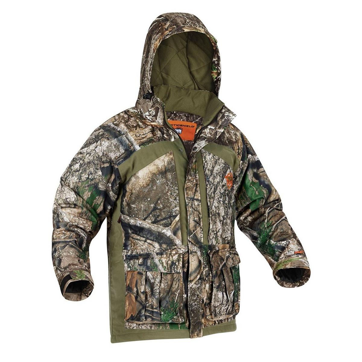 The Men's ArcticShield Classic Elite Parka offers warmth, comfort, and dryness from the elements on your next outdoor hunt. This Acrticshield Classic Elite Parka is waterproof and windproof paired with a relaxed fit design that sits comfortably over other layers. The high collar and chin guard protect your face from the wind while the adjustable drawcord hood offers an extra layer of wind protection. Hand warmer pockets provide a quick and easy spot to rest your hands while you wait for the big buck to come through. This Arcticshield Classic Elite Parka is made with a durable polyester tricot outershell that protects against common outdoor abrasions. Stay warm, dry, and protected from the wind in the Men's ArcticShield Classic Elite Parka.