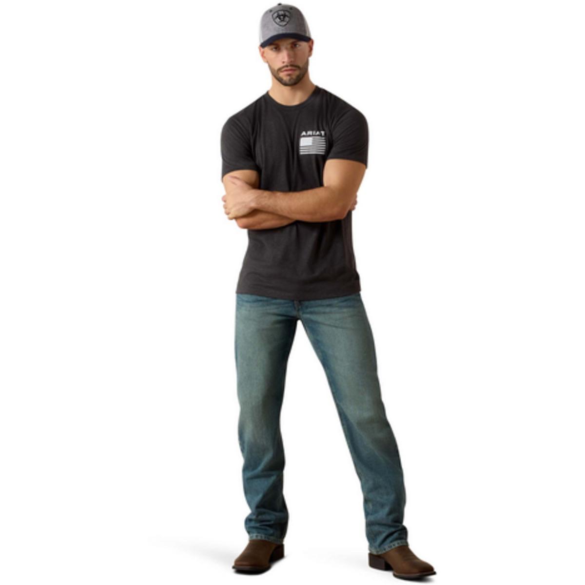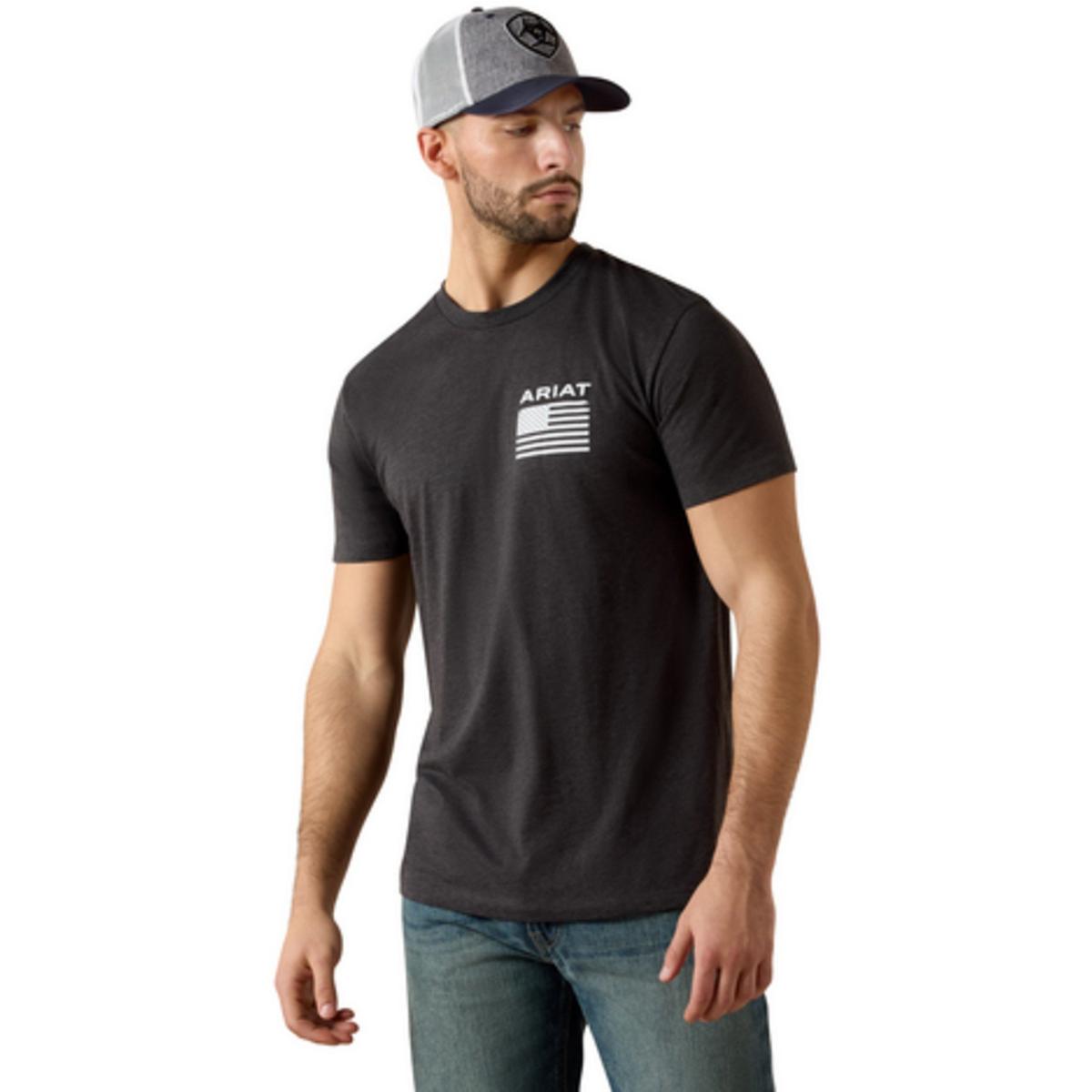 The Men's Ariat Freedom T-Shirt is a fusion of comfort, style, and patriotic spirit. Made from premium quality, soft cotton blend fabric, this shirt ensures optimum comfort and durability for all day wear. The eye-catching graphic print featuring a bold American flag and eagle, proudly showcases your love for freedom and country. This tee is perfect for casual outings, BBQs, or simply lounging at home. Step out in style and make a statement with the Men's Ariat Freedom T-Shirt.