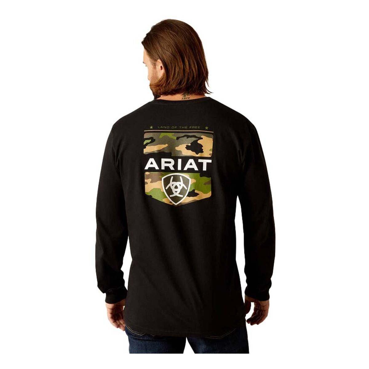 {"reviews":[],"offset":0,"limit":10,"total":0}"Full Description:\nYou can never have too many graphic tees—especially when they're this soft. With an Ariat logo on the chest and a camo graphic on the back, it's a comfy staple you'll wear on repeat.\n\nFeatures:\n\u003cul>\n\u003cli>Screen printed logos\u003c/li>\n\u003c/ul>\n\nSpecifications:\n\u003cul>\n\u003cli>Lightweight 4.3 oz cotton/polyester blend\u003c/li>\n\u003cli>100% cotton\u003c/li>\n\u003cli>Imported\u003c/li>\n\u003c/ul>\n"
