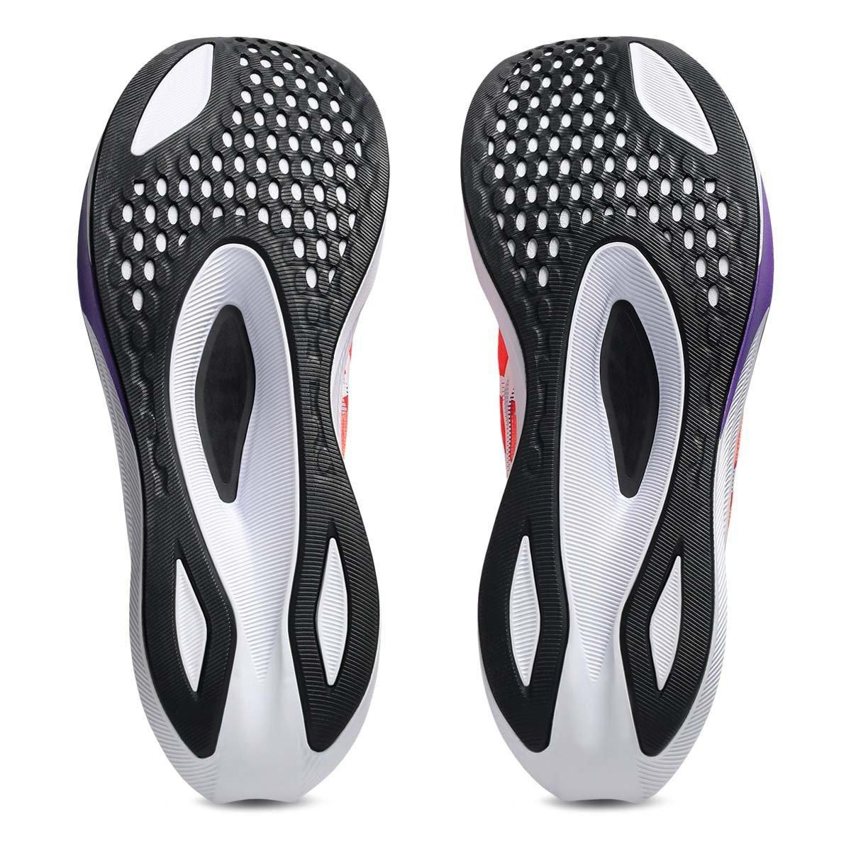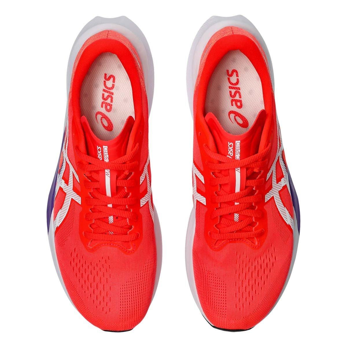 The Men's ASICS Magic Speed 4 running shoe is designed to propel you on your race. Engineered to help you achieve your fastest times, these shoes blend power with lightweight comfort. Stability and quick transitions are enhanced through the integrated carbon plate while FLYTEFOAM™ Blast Plus cushioning delivers an energetic and responsive feel underfoot. Reducing ankle flexion, the GUIDESOLE™ technology helps improve running efficiency. An engineered mesh upper offers excellent breathability and a secure fit, making the Men's ASICS Magic Speed 4 Running Shoes an ideal choice for race day and up-tempo training.