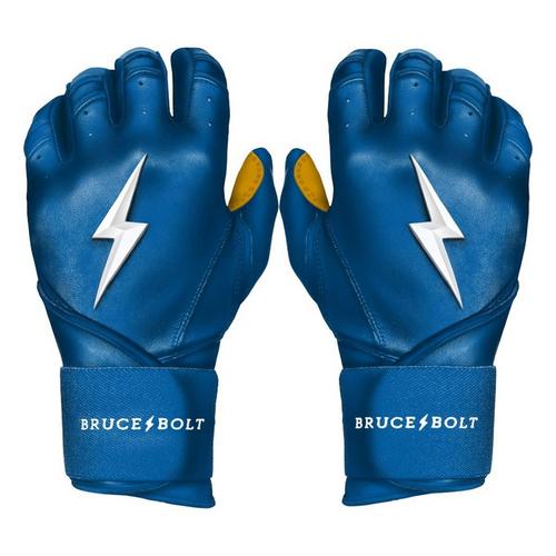 The Men's Bruce Bolt Long Cuff Batting Gloves are premium batting gloves designed to keep players comfortable and protected throughout the season. Made from 100% Cabretta leather, these Bruce Bolt batting gloves are buttery soft for an incredible feel, while the stitching techniques ensure maximum durability. In fact, Bruce Bolt batting gloves are handmade for premium craftsmanship. With the long-cuff design, these Bruce Bolt batting gloves offer more wrist stability on the back of the hand, while the heavy-duty elastic wraps provide support and power throughout your swing. Be ready when you step up to the plate this year with the Men's Bruce Bolt Long Cuff Batting Gloves.