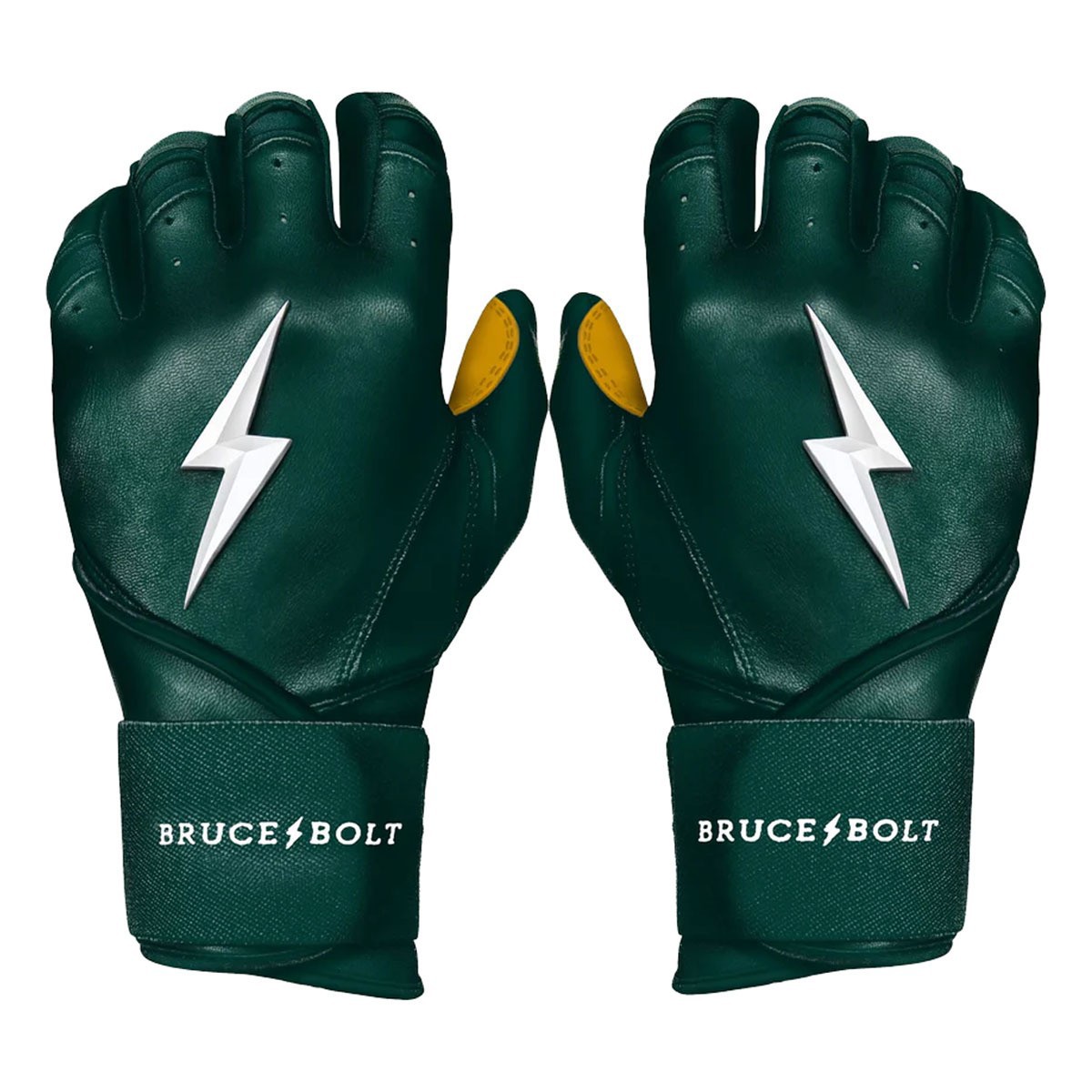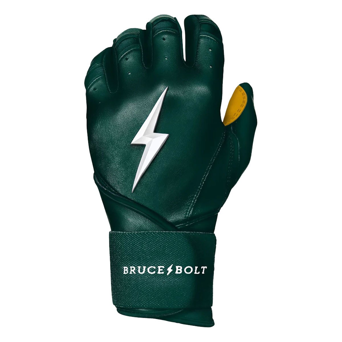 The Men's Bruce Bolt Long Cuff Batting Gloves are premium batting gloves designed to keep players comfortable and protected throughout the season. Made from 100% Cabretta leather, these Bruce Bolt batting gloves are buttery soft for an incredible feel, while the stitching techniques ensure maximum durability. In fact, Bruce Bolt batting gloves are handmade for premium craftsmanship. With the long-cuff design, these Bruce Bolt batting gloves offer more wrist stability on the back of the hand, while the heavy-duty elastic wraps provide support and power throughout your swing. Be ready when you step up to the plate this year with the Men's Bruce Bolt Long Cuff Batting Gloves.
