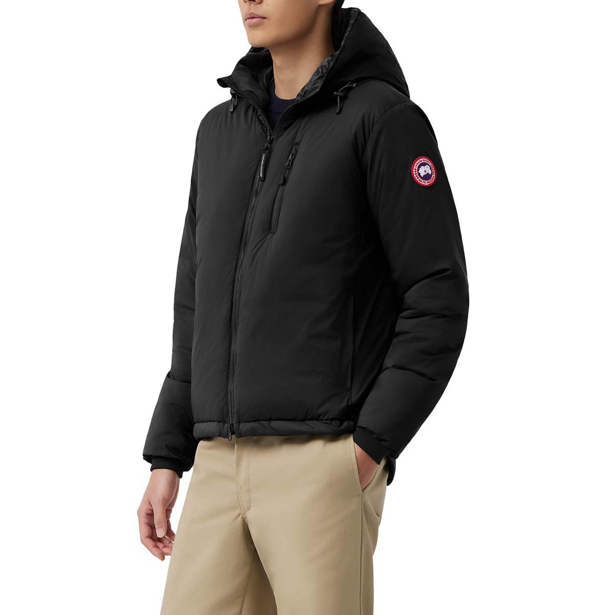 The Men's Canada Goose Lodge Hoodie Jacket is your go-to barrier against the cold wind. The Canada Goose Lodge Hoodie is ultra-lightweight and can easily be packed into the interior zippered pocket for traveling or use as a pillow. Made from windproof and water-resistant material, the Canada Goose Lodge Hoodie keeps you dry, while the down insulation traps and retains heat for maximum warmth on cold days. For added protection against winter weather, the Canada Goose Lodge Hoodie has a down-filled hood, drop-tail hem, and Power Stretch® cuffs. Stay comfortable during unpredictable weather with the Men's Canada Goose Lodge Hoodie Jacket.