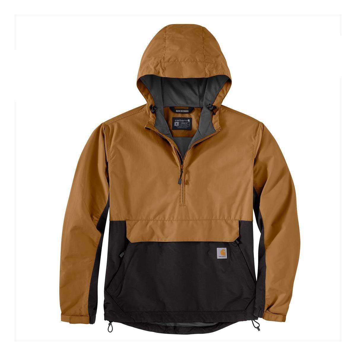 Stay dry and comfortable in any weather with the Men's Carhartt Rain Defender Loose Fit Lightweight Packable Anorak Rain Jacket. This jacket is crafted with Carhartt's Rain Defender technology, repelling water to keep you dry in showers or heavy rain. Despite its high-performance design, it remains lightweight and easily packable, making it ideal for travel or outdoor adventures. The loose fit ensures easy layering and movement, providing both convenience and comfort. With its durable construction and versatile style, this Carhartt Anorak Rain Jacket is a reliable choice for any man's wardrobe.
