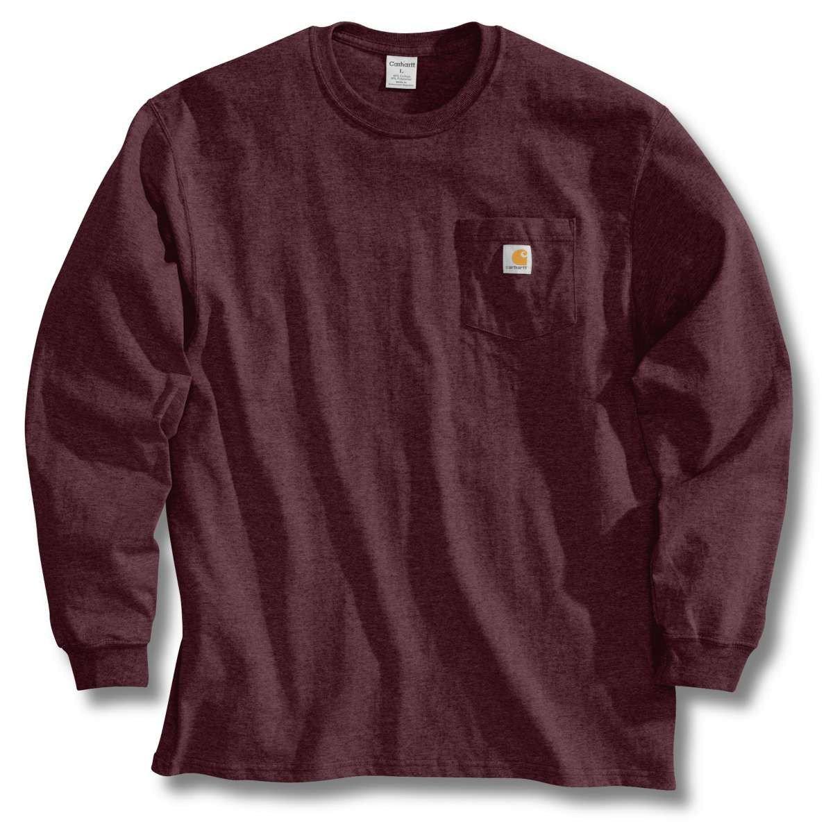 The Men's Carhartt Long Sleeve Pocket Tee is a perfect and durable layer to wear on your hardest jobs. Made from heavyweight cotton jersey material, this Carhartt long sleeve is soft yet durable, while the generous cut offers a roomy fit, especially while working. The ribbed crewneck and wrist cuffs on this Carhartt long sleeve provide more comfort and holds shape throughout the day. Plus, the left chest pocket features a sewn-on Carhartt patch. Stay comfortable and free to move while working in the Men's Carhartt Long Sleeve Pocket Tee.