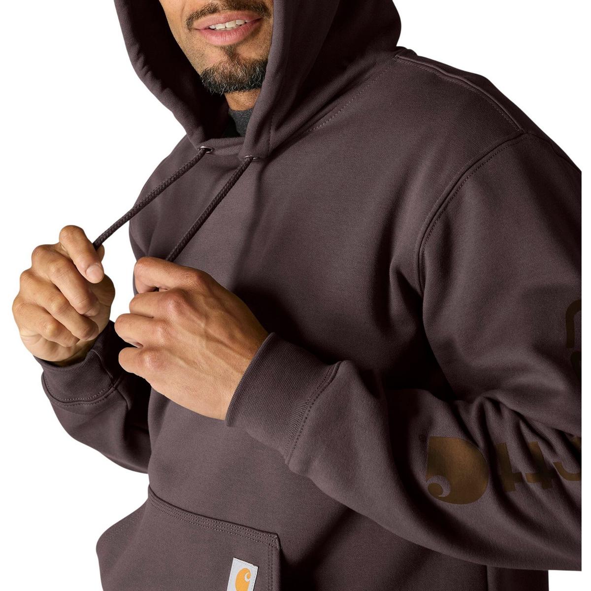 The Men's Carhartt Midweight Logo Sleeve Hoodie will be your go-to sweatshirt all year long. This Carhartt hoodie for men combines the classic comfort of a sweatshirt with Carhartt durability. The Men's Carhartt Midweight Logo Sleeve Hoodie prominently displays the Carhartt logo and Carhartt patch so you can show off your favorite brand. Plus, with a front handwarmer pocket and attached hood, you'll get plenty of protection against cold and wind. Warm up with the Men's Carhartt Midweight Logo Sleeve Hoodie in any season.